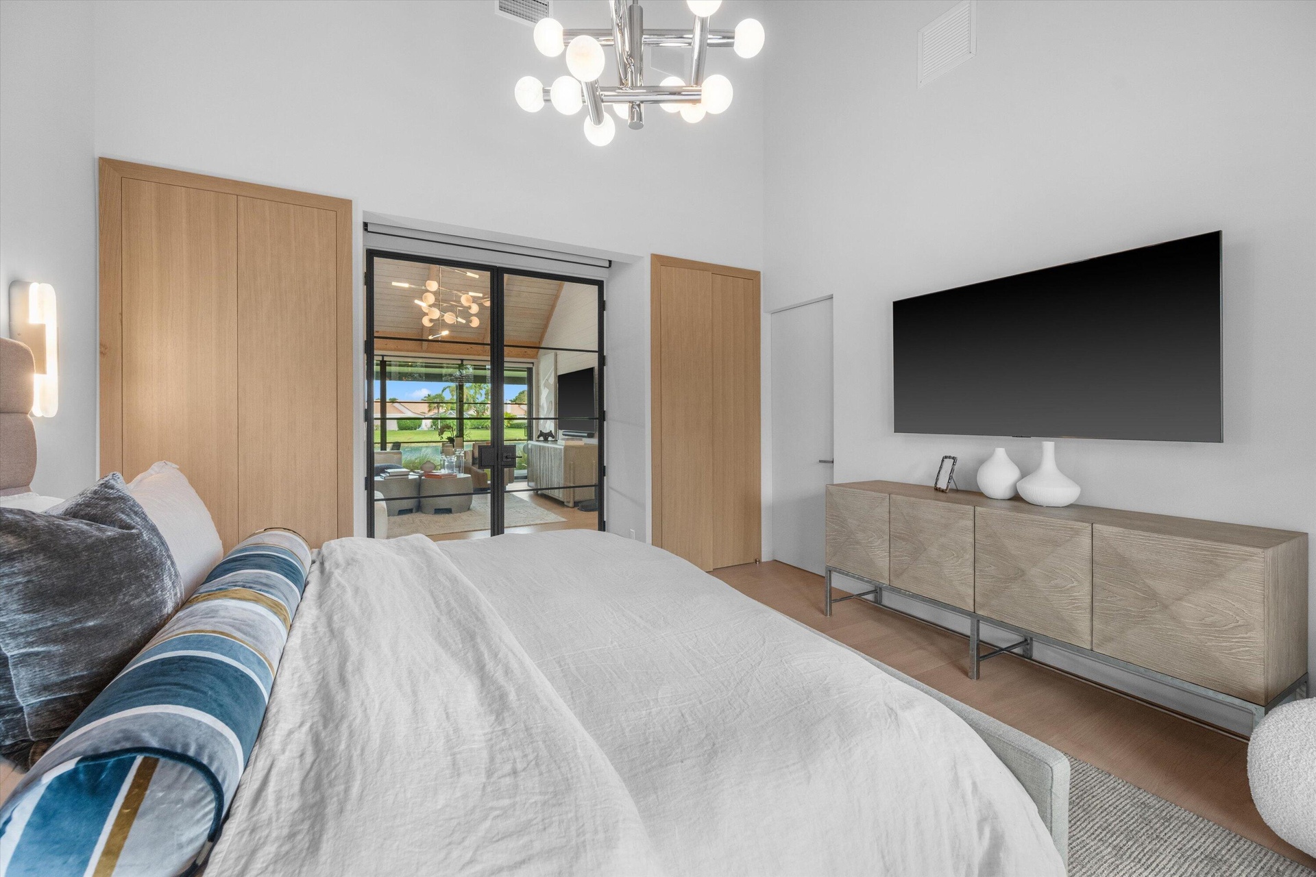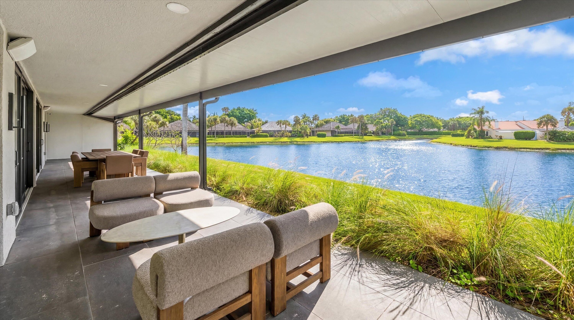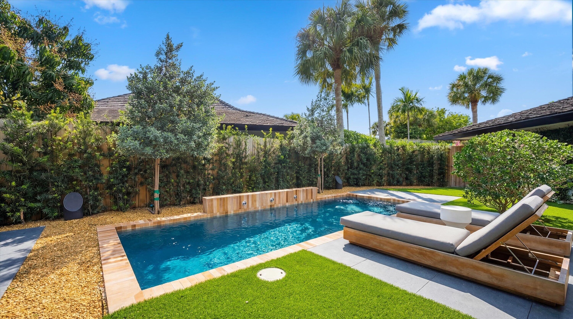 Tucked within the sought-after Palm Beach Polo community, this fully renovated 3-bedroom, 3-bathroom bungalow offers a refined blend of modern design and effortless indoor-outdoor living. Designed by Soco Interiors and offered fully furnished, the home is move-in ready with a clean, cohesive aesthetic throughout. Vaulted wood-beamed ceilings create a warm architectural statement, while wide-plank flooring and soft neutral tones enhance the light-filled, open layout. The kitchen is both functional and beautifully finished, featuring custom cabinetry, premium appliances, and a generous island that flows into the main living area. Expansive sliders open to a covered patio with wide water views. Outdoors, a private pool and thoughtfully landscaped grounds create a polished, low-maintenance setting. Additional highlights include a one-car garage and a prime location within one of Wellington's most desirable communities, just moments from the equestrian venues, dining, and shopping.