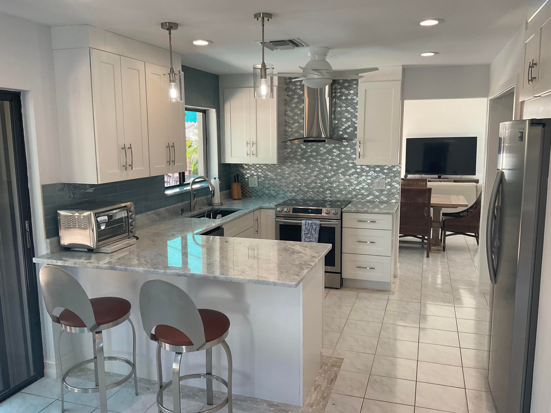 Welcome to ''The Coastal Retreat'' at Pelican Harbor, a 24-hour manned guard gated waterfront community in east Delray Beach. This fully renovated, 4 bedroom/3 bath single family home is situated on one of the largest and best lots in the neighborhood and is being offered fully furnished and turnkey. Featuring a large, PRIVATE POOL; newer kitchen with granite countertops; top of the line appliances and custom cabinetry; beautifully renovated Primary Bathroom with double vanity and walk-in marble tiled shower; hardwood and ceramic flooring; newer state-of-the-art A/C, venting system and insulation; and a 2025 beautifully repaved driveway and courtyard area. Rounding out the amazing features of this home include the large, fully-fenced outdoor living area with BBQ, partly covered for dining al fresco and exceptional for entertaining. The Primary Suite is located on the ground floor (along with 1 guest bedroom with queen bed and full bath) and offers a king-sized bed, large walk-in closet, and beautifully redone en-suite bath. Two guest bedrooms (one with a king-sized bed and other with queen), additional living area with TV, rooftop balcony, and 1 full bath are located on floor 2.