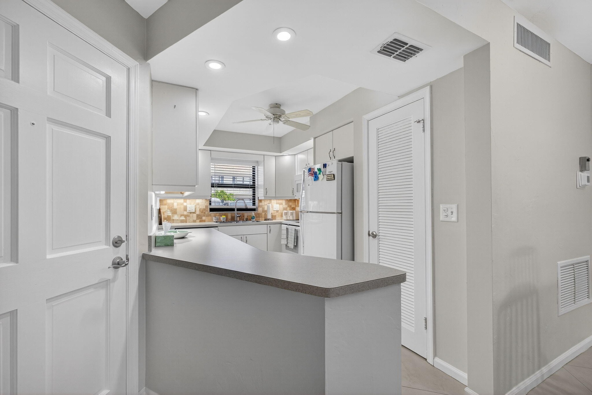 Welcome home to your winter paradise. This furnished condo has it all. Views, amenities, affordability, you name it! Tile floors and vinyl plank flooring throughout, and newer appliances make this home feel cozy. A covered lanai makes dinner with a view a possibility. Located just steps away from the community pool and the Jupiter Inlet. There is certainly something for everyone here in this active 55+ community.