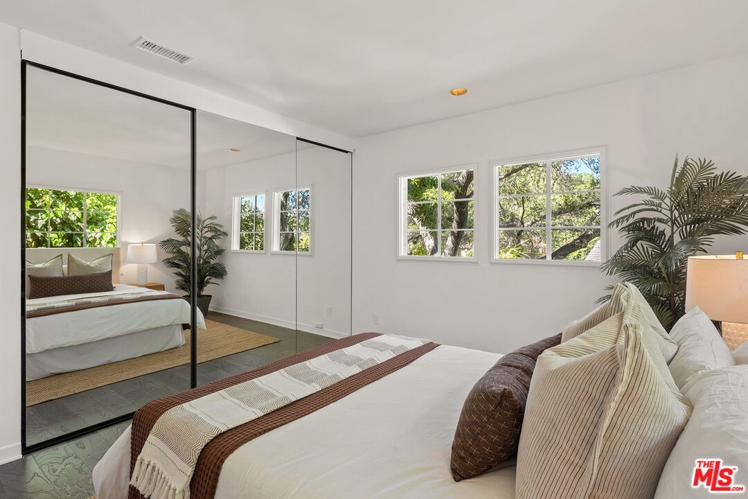 Nestled behind gated privacy, this beautifully renovated home is a true sanctuary from city life. A sweeping front patio, anchored by two majestic 100 year old oak trees, creates an ideal indoor/outdoor living space for entertaining and quiet relaxation. The light-filled floor plan flows effortlessly from an expansive living room with a decorative fireplace to a dining area, while a brand new chef's kitchen features custom cabinetry and stainless steel appliances. Two generously sized bedrooms are thoughtfully situated on the opposite side of the house for added privacy. Both bedrooms offer tranquil treetop views. The fully remodeled bathroom features a large walk-in shower and a skylight that bathes the space in natural light. Recent major renovations include: a new chef's kitchen, new bathroom, new HVAC, new sewer line, all new electrical, all new copper plumbing, all new appliances, a new tankless water heater, and a 3 year old roof. The location is perfect, just moments away from the Hollywood Bowl, Universal CityWalk, Runyon Canyon, Griffith Park, and the iconic Hollywood Sign, and walking distance from gyms, a dog park, bars, restaurants, a convenience store and Starbucks, and minutes away from the Metro red line, Warner Brothers and Universal Studios. This home is a rare combination of privacy, thoughtful design, and turnkey upgrades, set in a beautiful, friendly, walkable neighborhood. Seller is offering soil reports to buyers interested in developing the expansive, double-lot backyard.