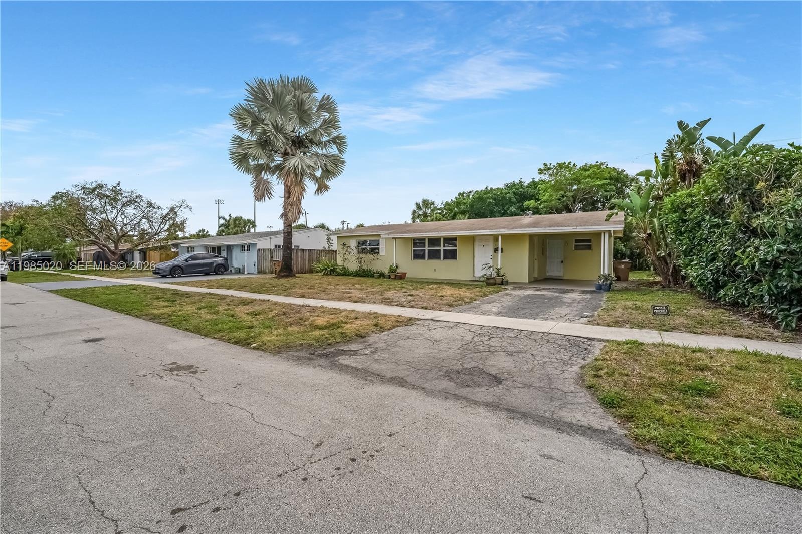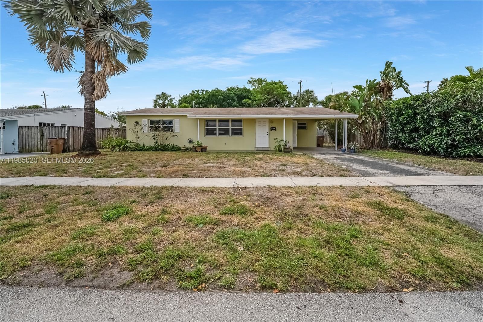 Bike to the beach and enjoy waterfront dining at The Cove Waterfront Restaurant from this well-located home in Deerfield Beach. Some photos are virtually staged. Features include a newer roof, impact windows, terrazzo floors in the bedrooms, and tile throughout the main living areas (with terrazzo underneath). The layout offers a dining room, attached carport, and a screened back porch for relaxing outdoor living. Kitchen and bath are ready for your updates—an excellent opportunity to create your own South Florida retreat.