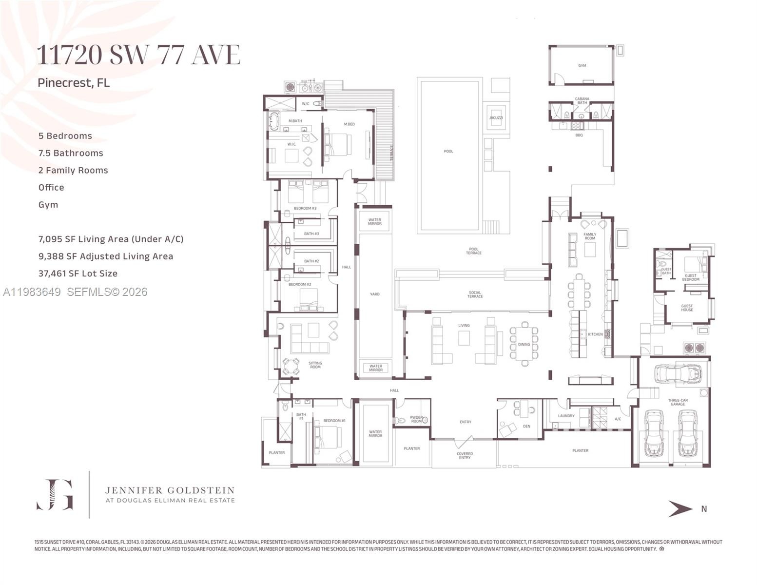 Striking brand new construction contemporary residence designed around a spectacular private courtyard pool with fountains and lush tropical landscaping, creating seamless indoor-outdoor living. This thoughtfully designed home offers 5 bd and 7.5 ba with expansive living spaces, soaring ceilings, clerestory windows, and walls of glass that fill the interiors with natural light. The chef’s kitchen features dramatic marble waterfall islands, custom cabinetry, high-end appliances, and a full second pantry. Additional spaces include a private office, gym, family room and second media room. The resort-style courtyard is surrounded by expansive terraces and complemented by two cabana bathrooms, creating the perfect setting for entertaining and relaxed South Florida living.