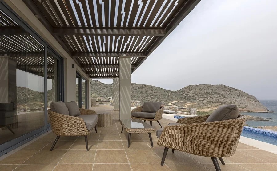 This luxury villa for sale in Agios Nikolaos, Crete is located in the area of Mochlos, above a small bay and only within 150 meters from a beautiful beach and a marina for small boats.