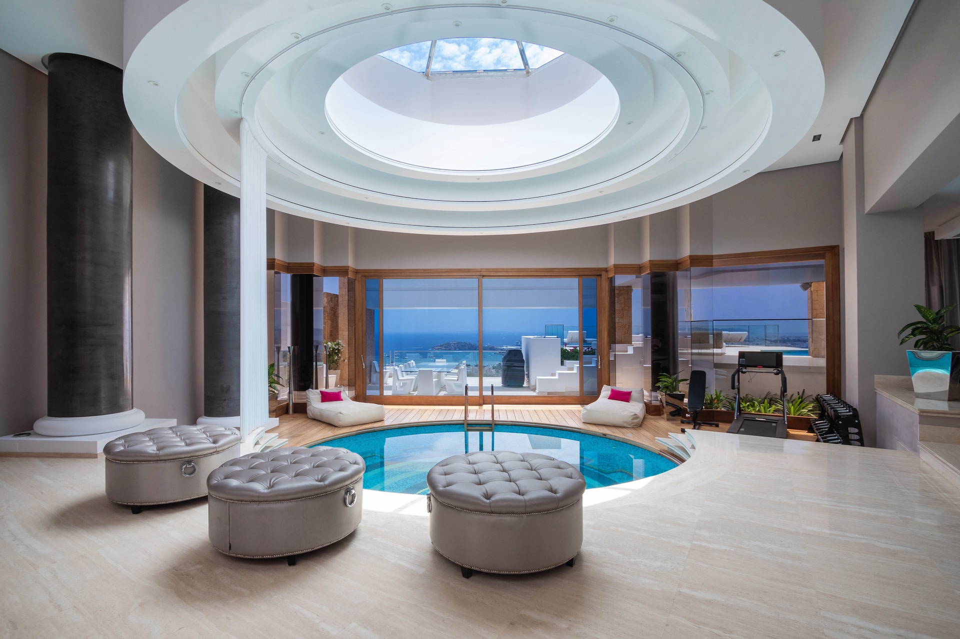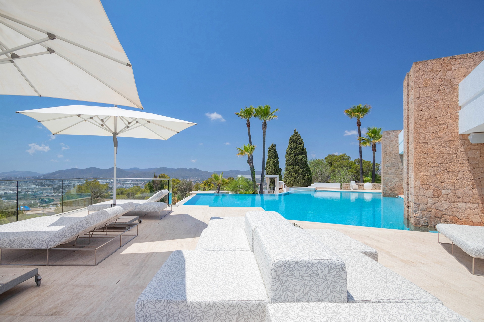 The Pools: Four distinct swimming pools and a heated jacuzzi, all positioned to capture sweeping Mediterranean vistas.
