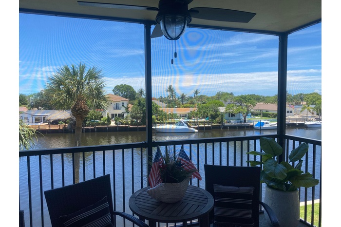 Stunning Boca Raton Waterfront Seasonal Rental Beautifully renovated, tastefully furnished deluxe model with captivating Hillsboro Canal views from a private screened balcony.