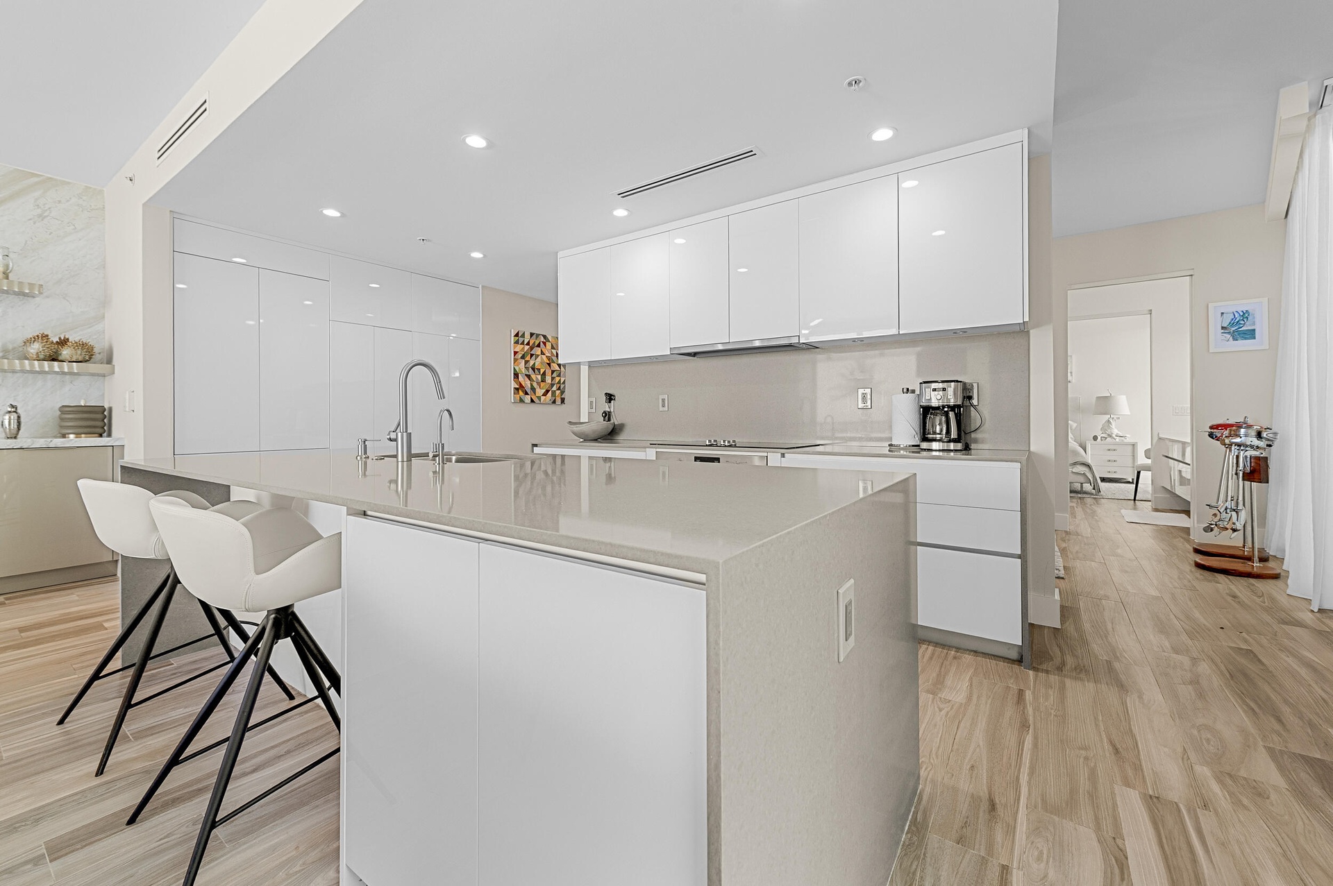 Available for the months of April - December only. Upon entering this two bedroom + den residence directly via elevator, you welcomed with south facing views of the Palm Beach Inlet and Atlantic Ocean. Being on the first level, this condo lives like a villa just steps to the sand, and 15 min from PBI, Palm Beach and Jupiter. Enjoy morning sunrises and evening sunsets on the over-seized terrace, get some work done in the custom office built out in the den, and for the nights you decide to stay in, enjoy meals in the open concept gourmet kitchen. Built is 2017, Oceans Eighteen is a boutique development located in the charming beach town of Palm Beach Shores and offers residents under-ground parking, a pool and fitness center. 60 day min lease. No Pets. Laundry in-unit.