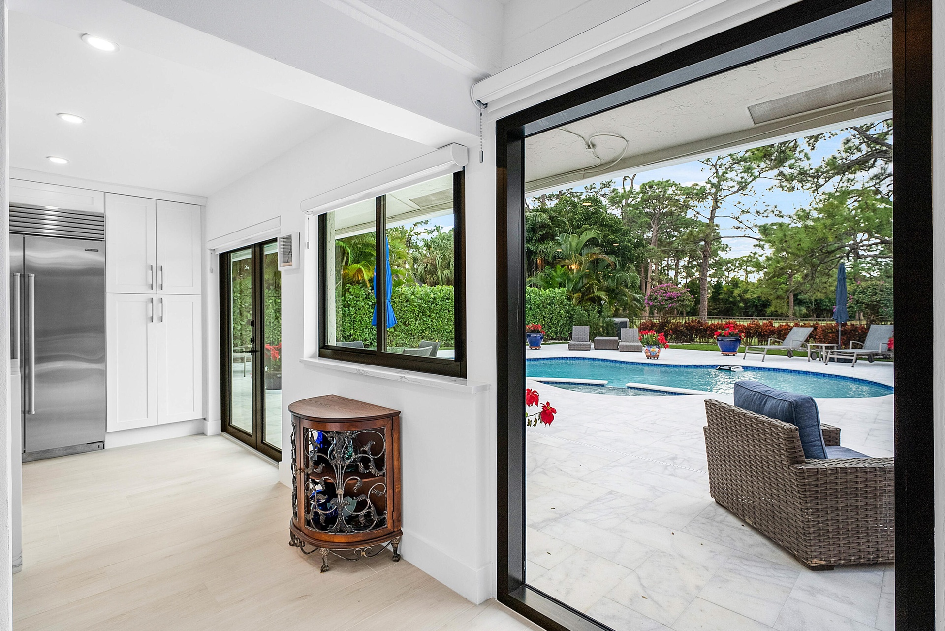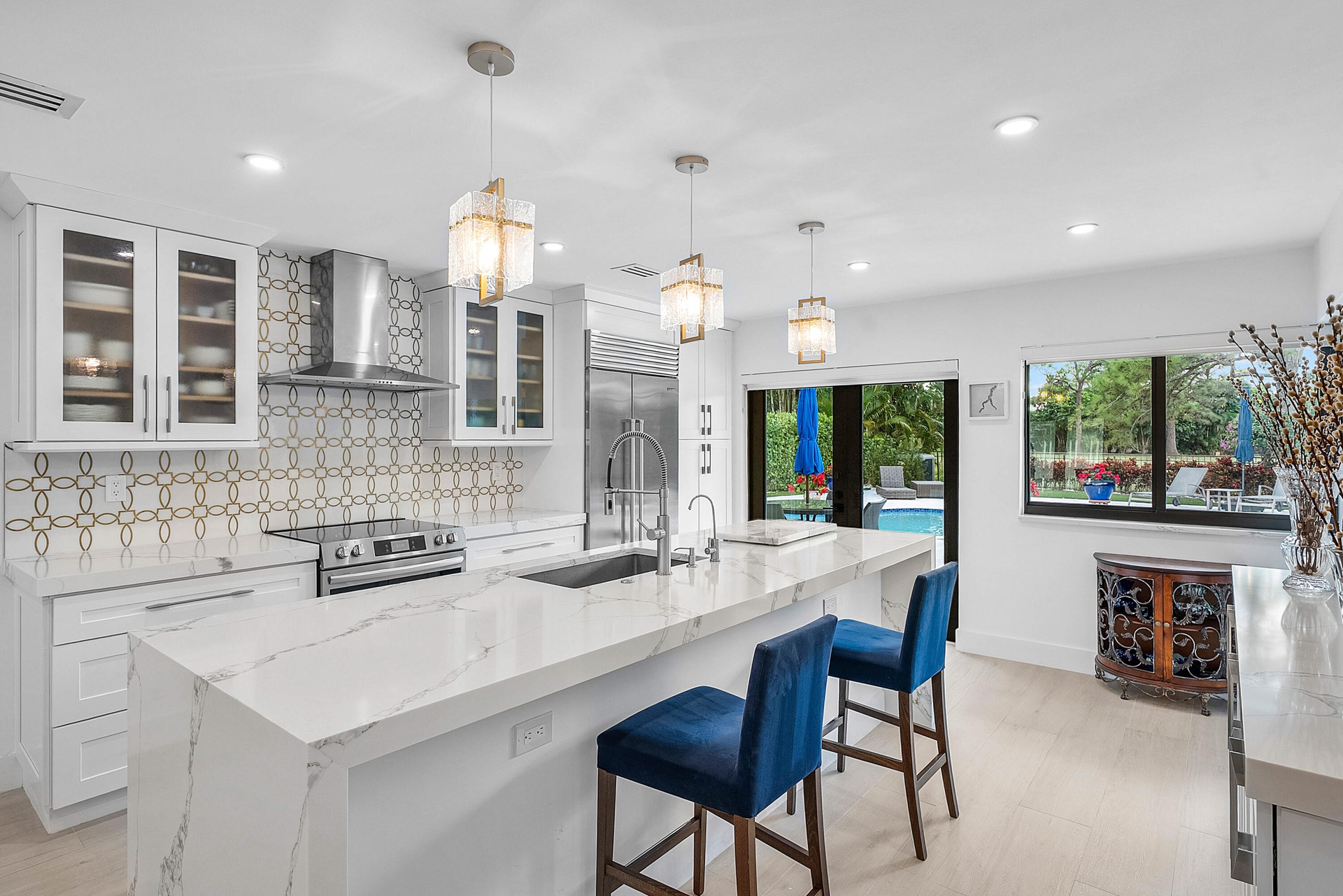 This stunning home offers a blend of modern luxury and serene privacy, creating the perfect sanctuary for everyday living and effortless entertaining. Step inside to discover an updated interior featuring a brand new chef's kitchen, custom bar, and beautifully redesigned bathrooms. High ceilings and gorgeous exposed wood beams elevate the living room, adding warmth, character, and an inviting sense of openness. The seamless flow of the home extends outdoors to your private backyard oasis, where peaceful views of the untouched preserve make every moment feel like a getaway. Luxurious, stylish, and set in an ideal natural setting is move-in ready and designed to impress at every turn. Surrounded by tropical foliage and fairways, the home is located in Seagate Golf Club where membership is optional NOT mandatory. Dining Room Chandelier in photos does not convey and will be replaced.