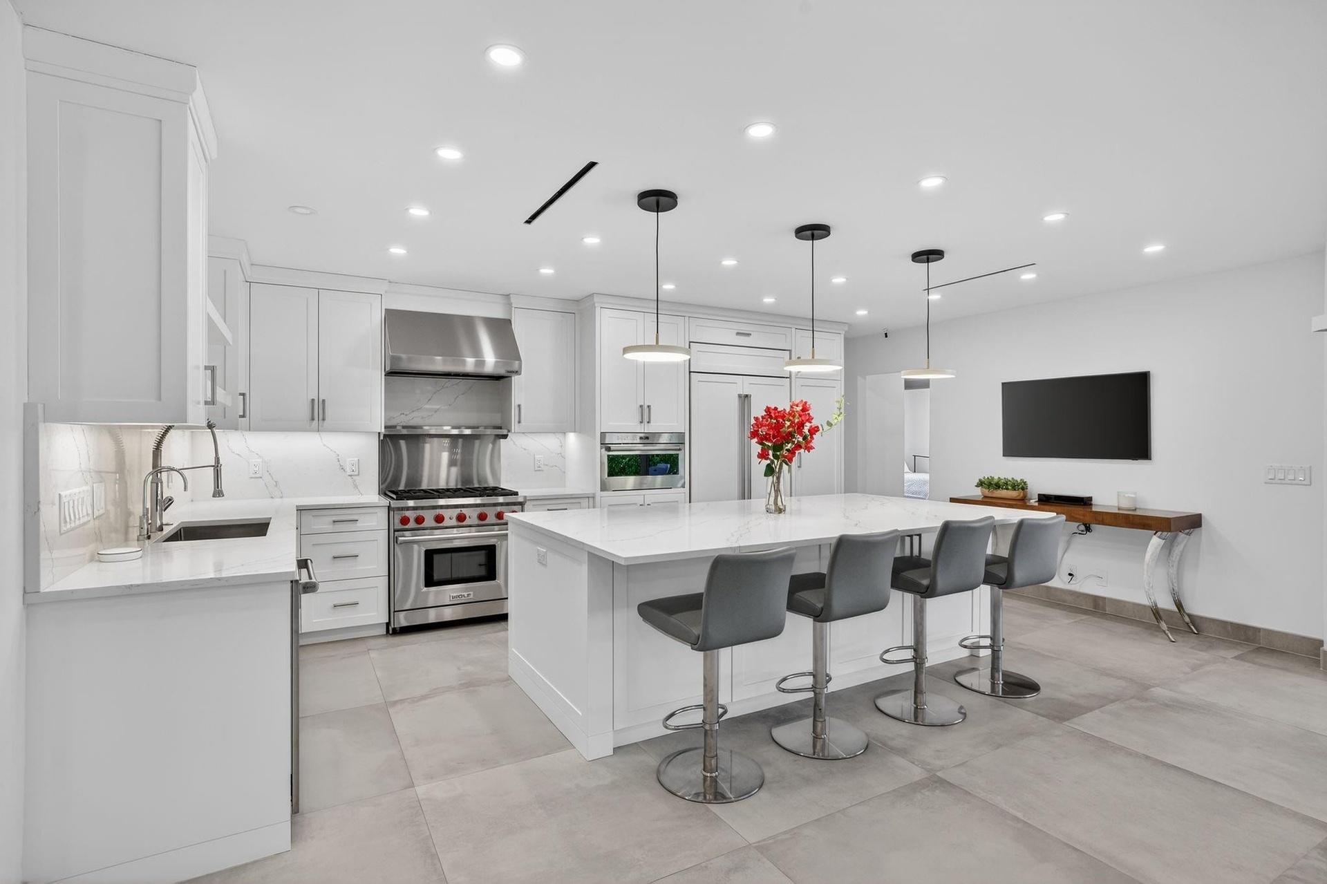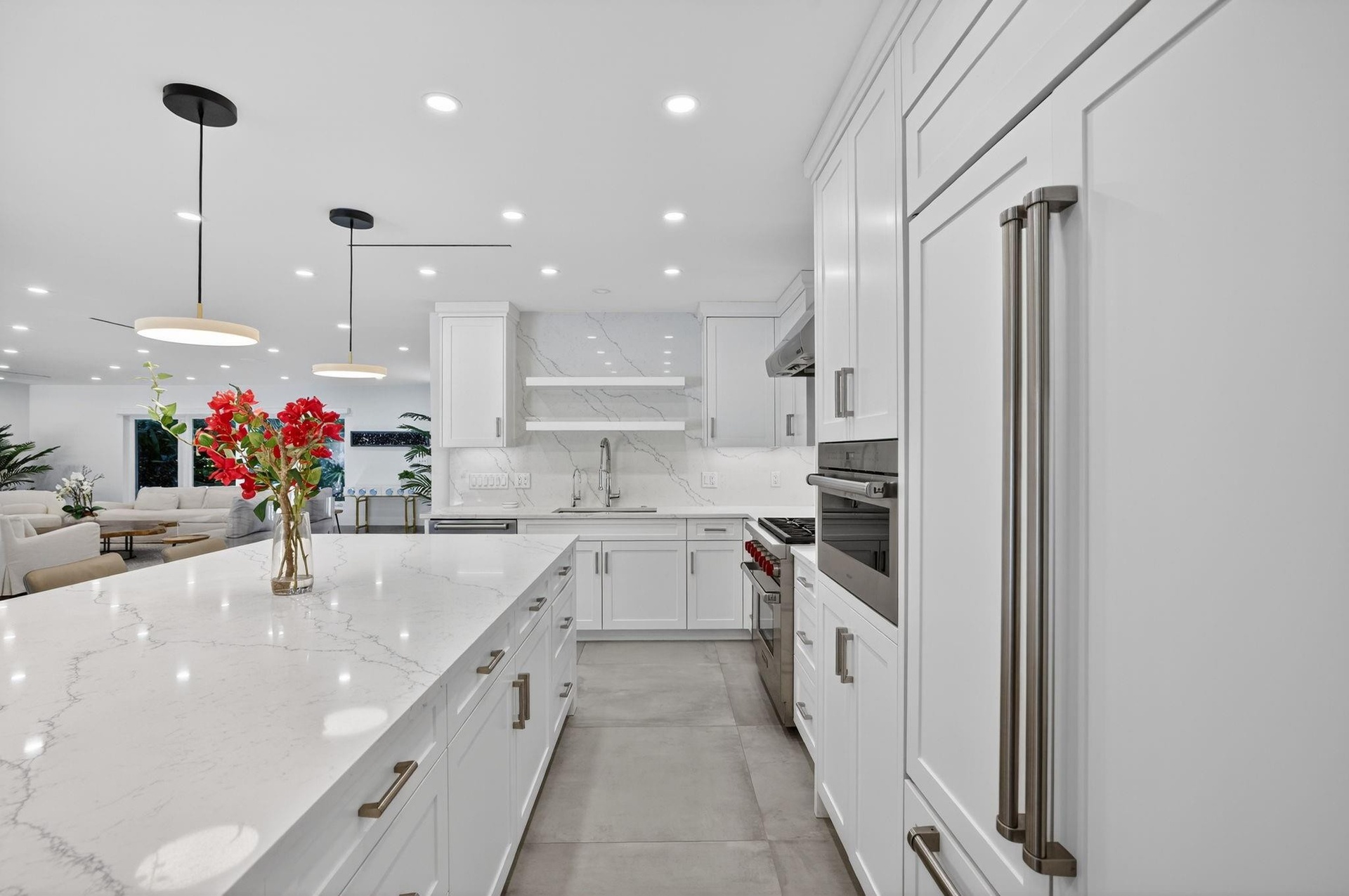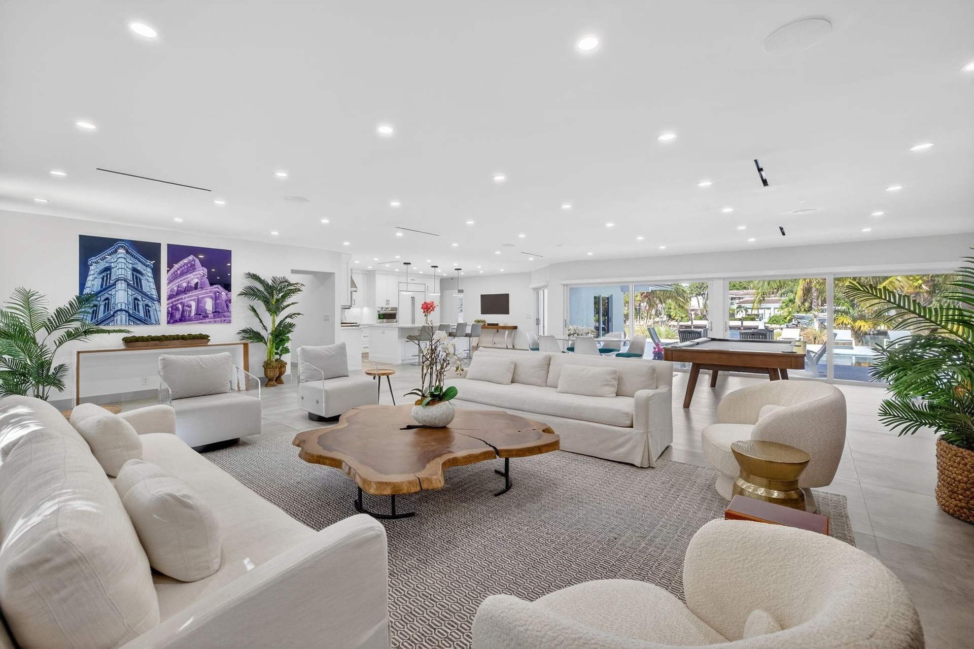 Located in Fort Lauderdale's premier 24/7 armed security guard-gated deepwater community. Move-in ready & furnished for quick closing. Custom island-inspired single level residence. 2022 total renovation shows as NEW: metal roof, plumbing to street, all new electrical, air conditioners, tankless water heater & generator. Latest open concept living, great room, Chef's kitchen, porcelain tile floors, new impact glass & interior doors. Private Primary Suite, dual closets, new modern spa style bath, enclosed water closet, soaking tub & floating vanities. Split floorplan: 2 secondary bedroom suites, office (4th bed), cabana bath, air-conditioned garage. Most rooms access pool & wide-open radius turning basin views, 95ft protected dockage. Perfectly located for Pine Crest & other A rated schools Bay Colony features full time (24/7) armed security with only one guard house and access point. There are only 108 residences in Bay Colony as of this listing.2022 Custom Renovation (in addition to the above) includes:-Interior:* Large format porcelain tiles matching throughout the residence.* Mud-room/utility room with double LG washer and dryer systems and refrigerator, plus folding area and ample storage closets, desk area.* High-end plumbing features throughout include Porcelanosa and Toto* New interior doors & baseboards* Entirely new electrical service and custom lighting throughout the residence.* All new bathrooms with floating vanities and LED Mirrors.* Primary Suite: Separate custom closets, large spa style bathroom with enclosed water-closet, large shower and soaking tub. Window to exterior for natural light. Floating Italian style vanities with LED Mirrors & make-up area. Sliders to the pool area.* Entirely separate wing for the two secondary suites (both with new custom bathrooms) and home office (potential 4th bedroom). New cabana bathroom with exterior door to pool area.* Side access oversized air-conditioned garage with epoxy floors and large windows provide natural light. Currently doubles as gym.* Water softener* Tankless water heaterExterior:* Two Carrier Air Conditioners - 5 and 2 ton.* Circular driveway includes side access garage with parking for at least 6 cars on the side plus the circular driveway. All new pavers in the front and side pathways. New double entry front doors.* Fenced and gated rear backyard.* Fully renovated pool with marble pool decking and large covered terrace provides for outside dining and lounging.* Marble decking surrounds the entire pool area with large sunning area and separate area for firepit and grilling.* New docking with lighting and electrical service (boat lift excluded)* Professional landscaping throughout the entire property.24 KW Generator* New sea wall cap and dock