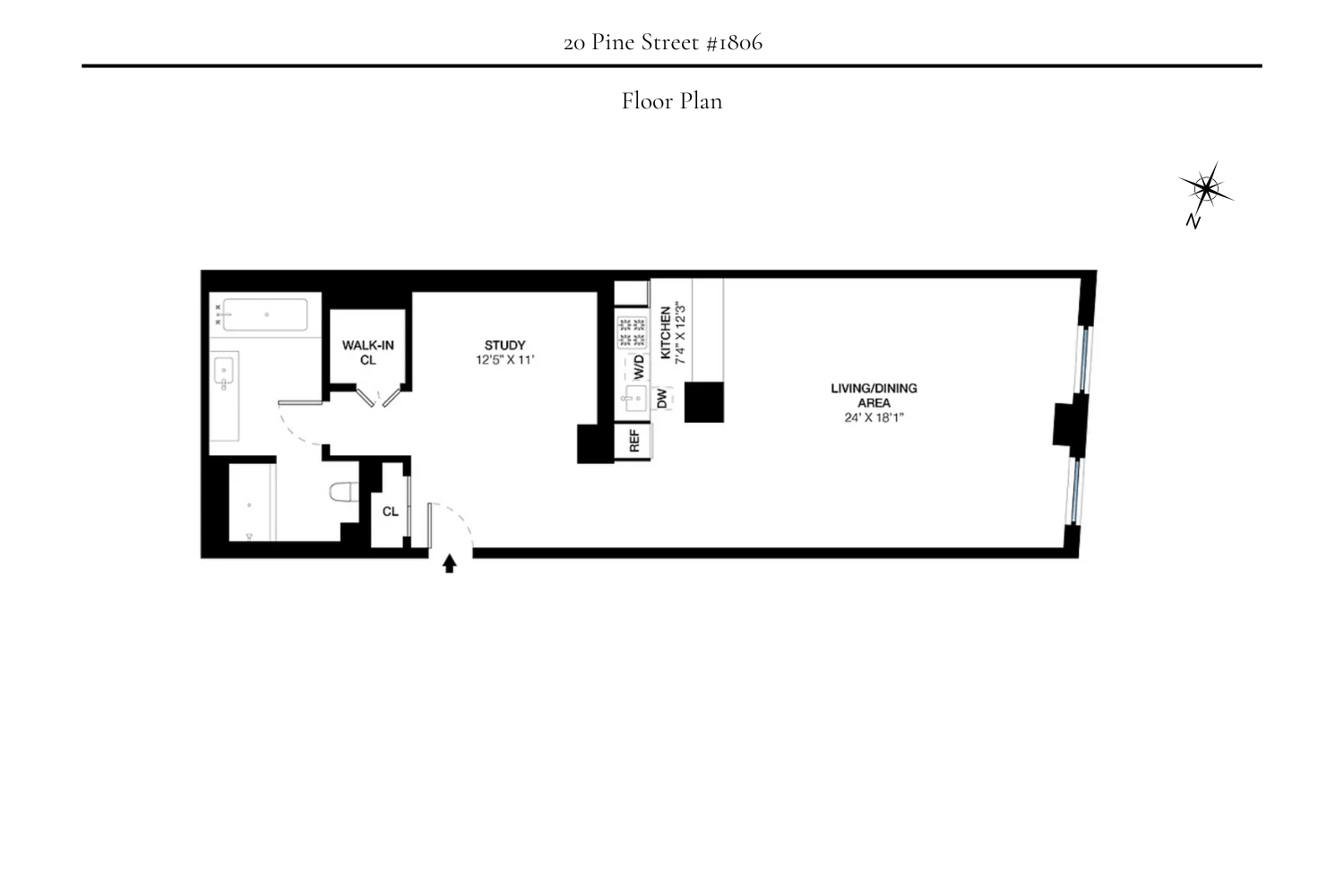 High floor, south facing loft with open, protected views of the New York Stock Exchange from two oversized windows real light and exposure that s hard to find in FiDi.