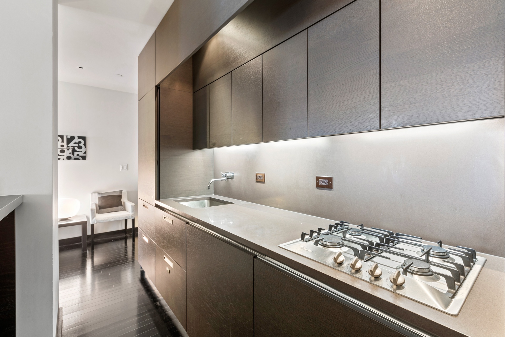 --Open kitchen with Sub-Zero refrigerator, Miele gas range, Fisher & Paykel dishwasher