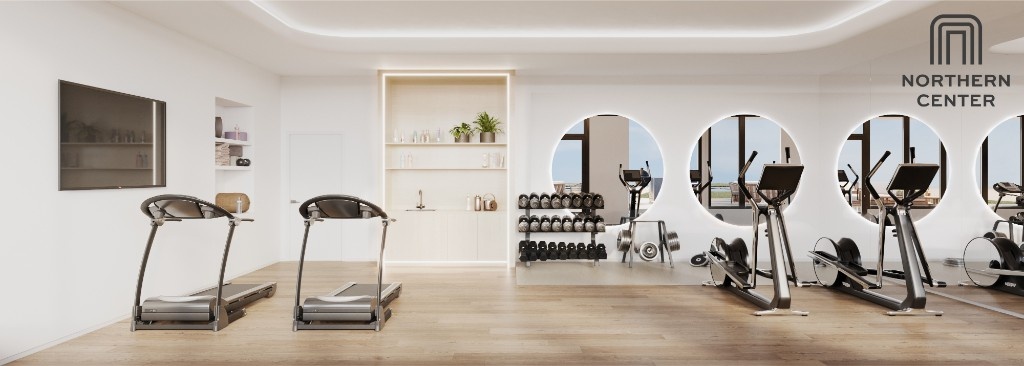 Northern Center offers a thoughtfully curated collection of amenities designed to enhance daily living. The resident lounge flows effortlessly into a beautifully designed outdoor terrace, creating a harmonious indoor-outdoor space perfect for relaxation or social gatherings. Surrounded by greenery, the terrace serves as a serene escape from the citys hustle. Residents can enjoy a well-equipped gym, calming sauna room, immersive golf simulator, and a vibrant kids playroom. An on-site garage is also available for added convenience.