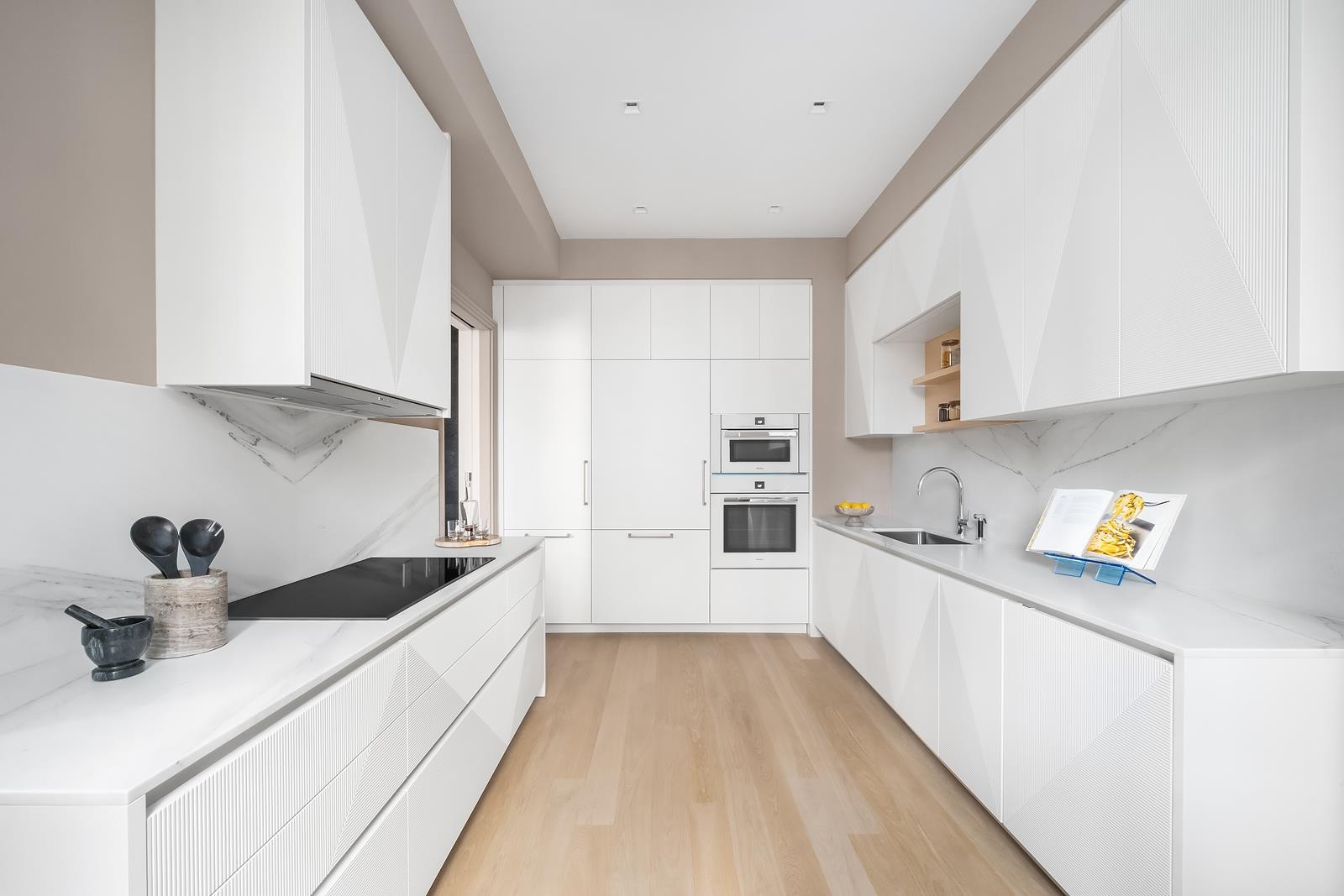 Designed to embody the building’s landmark stature, the interiors seamlessly blend prewar grandeur with contemporary refinement. Ceiling heights soar over ten feet throughout, enhancing volume and scale, while wide-plank French Oak hardwood floors add warmth and sophistication.