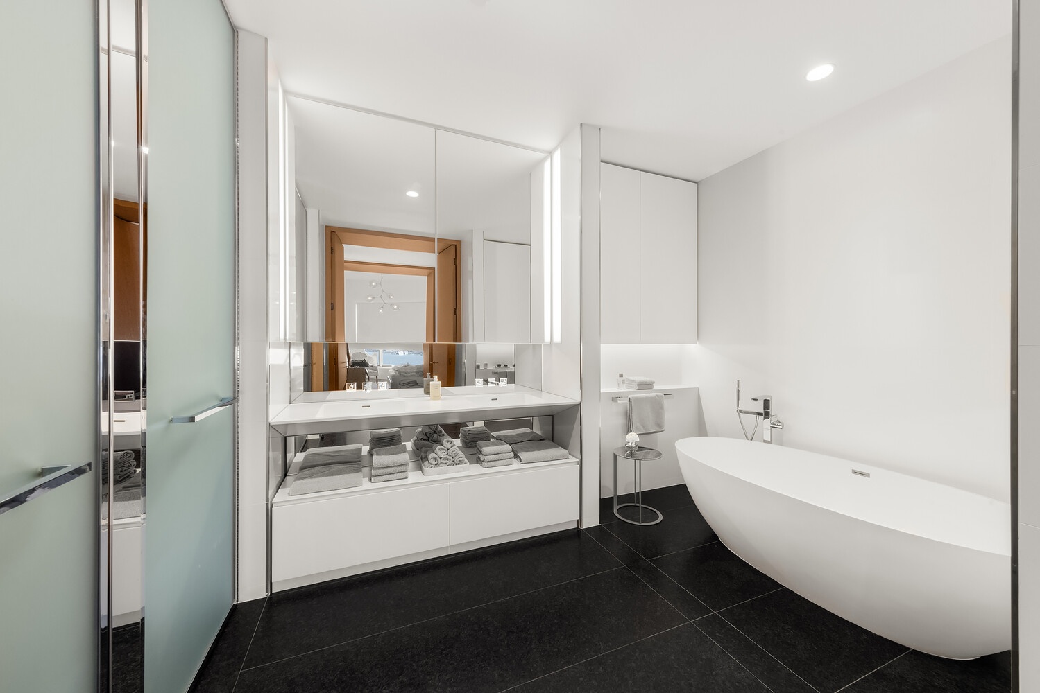 As you step into residence 7A, an elegant foyer sets the tone for a grand lifestyle, creating a refined ambiance.