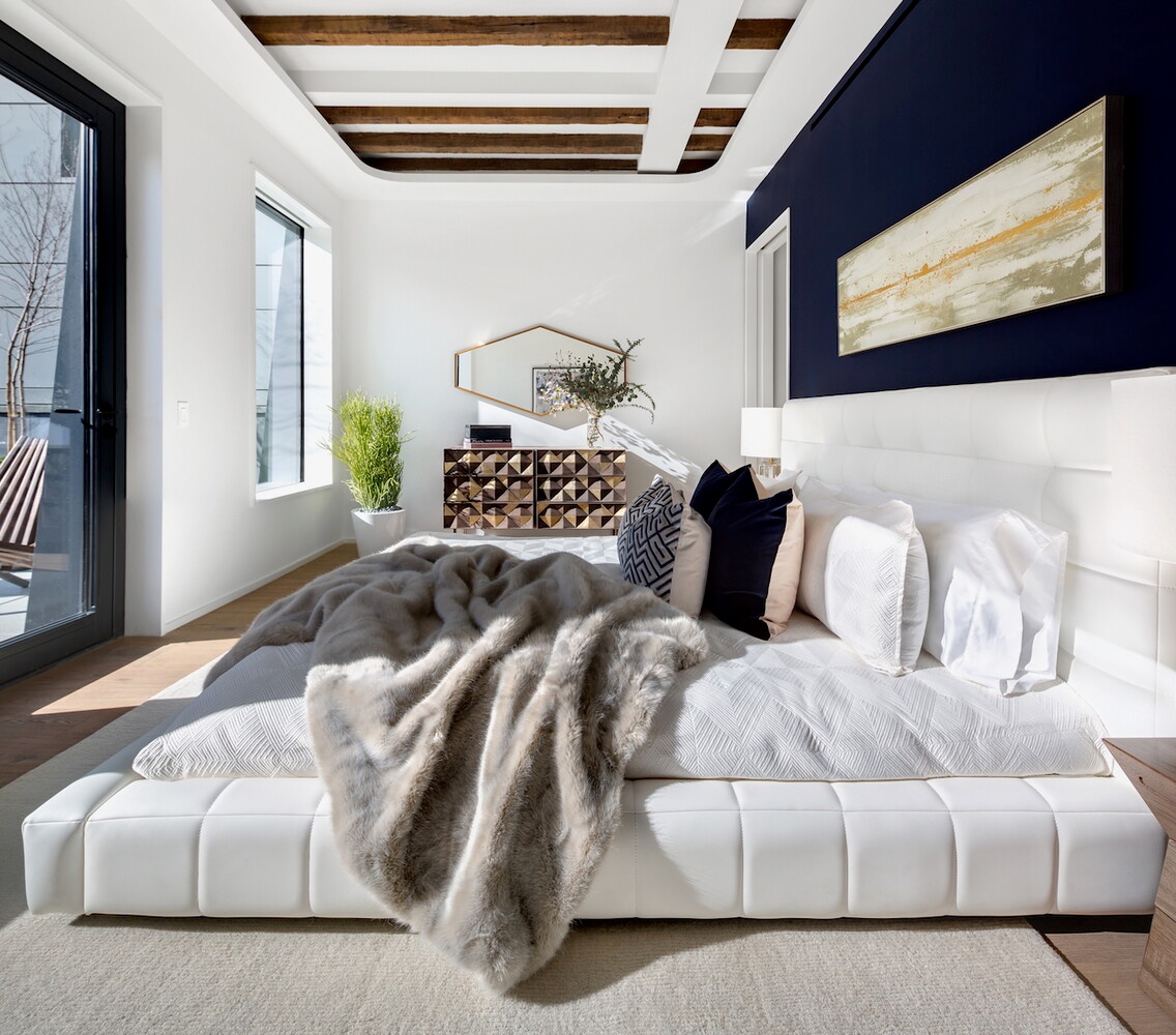 Residence features include 7.5-inch-wide plank Austrian white oak floors, ceiling heights up to 10'7" and a multi-zone Daikin climate control system complemented by hydronic radiant underfloor heating, and a full-sized washer/dryer.