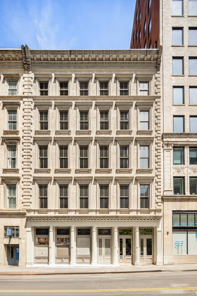 Located in the exclusive 10013 Tribeca zip code, the creatively developed building retains its Italianate, white marble facade, molded window surrounds, bandcourses, balustrades and bracketed cornices. The row of six similar buildings extends an entire city block of the sparsely populated neighborhood that is dominated by historic, low-lying buildings on cobble-stoned streets.