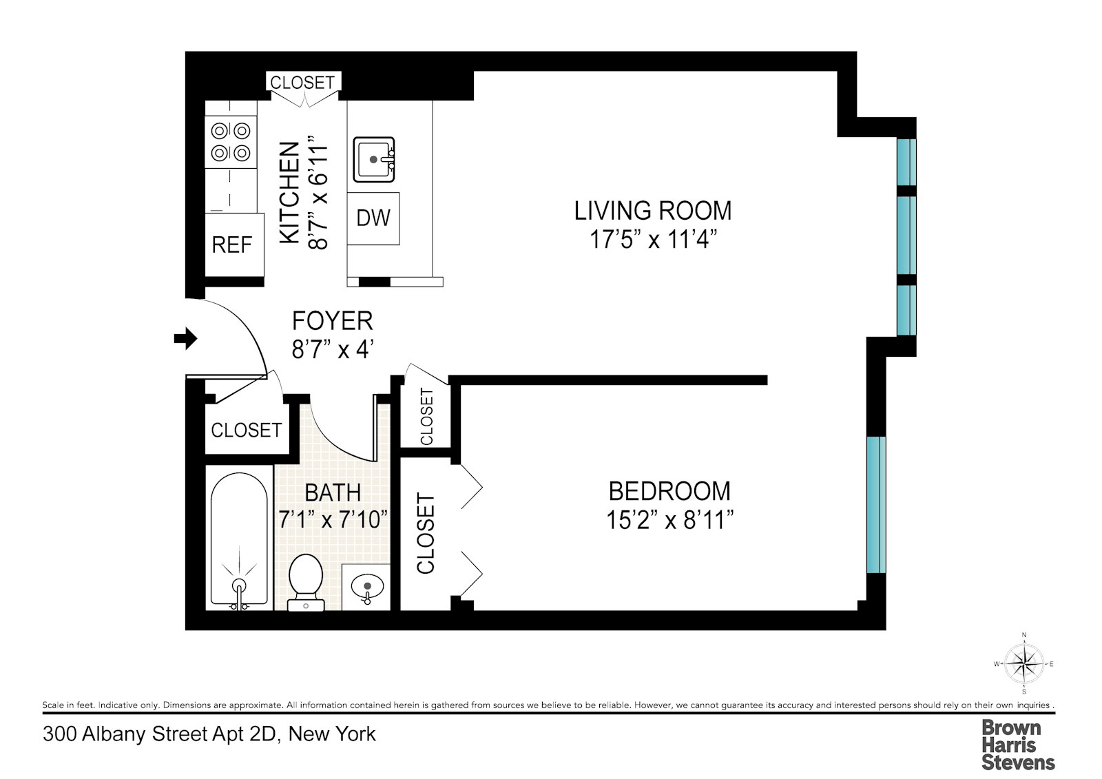 Discover 300 Albany Street, Apt. 2D - a bright, spacious Junior One-Bedroom with 550 sq. ft. in the heart of Battery Park City. Flooded with northern light and featuring 8' ceilings, hardwood floors, abundant closet space, and a renovated marble bath, this home is move-in ready. The open kitchen boasts maple cabinets, granite countertops and stainless-steel appliances.