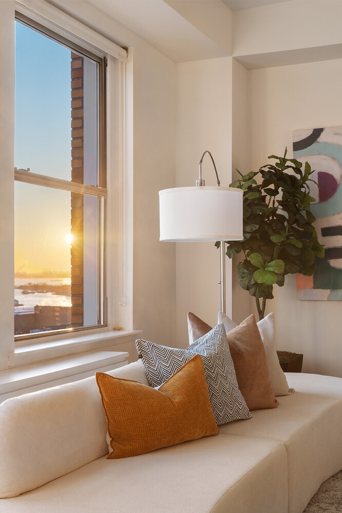 Sun-drenched and truly one of a kind, this loft-like home delivers a daily "wow" you can't replicate: bright southern exposure for direct light all day long, iconic views of the Statue of Liberty, and spectacular sunsets you'll watch from the comfort of your own living room and bedroom.
