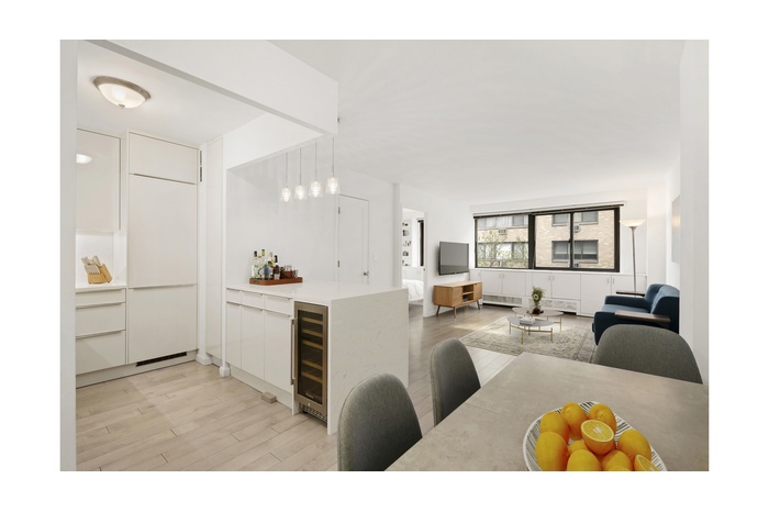 The combined space benefits from two full bathrooms, including one windowed bath, both in excellent condition. The units overlook the building's quiet interior gardens- bringing in natural light while offering a peaceful, private setting. Residence 6ES also features a gorgeous, newly renovated, ultra-chic kitchen that can beautifully anchor the new layout.