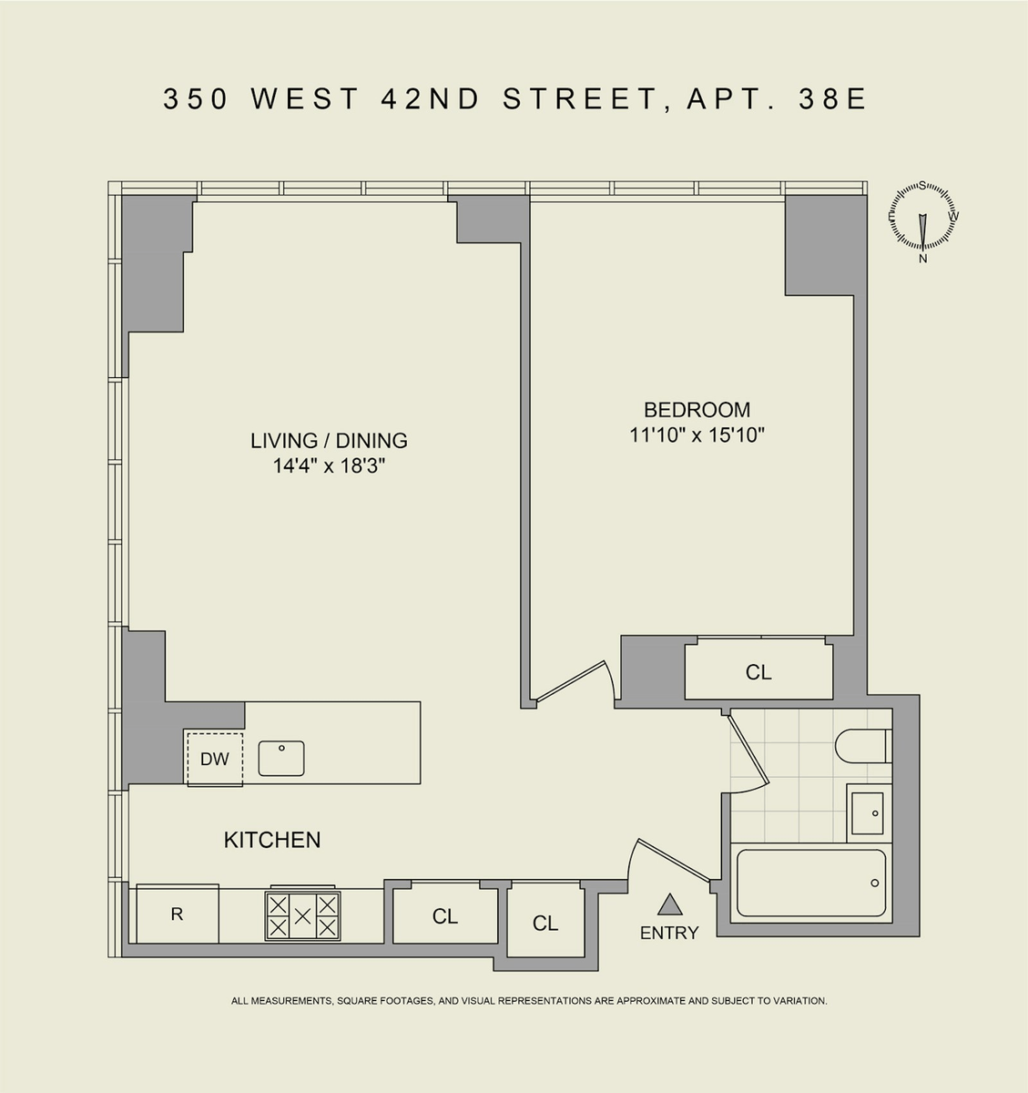 Set high above Midtown with sweeping skyline views and exceptional corner light, Residence 38E at The Orion is the largest and most desirable one bedroom layout in the building.