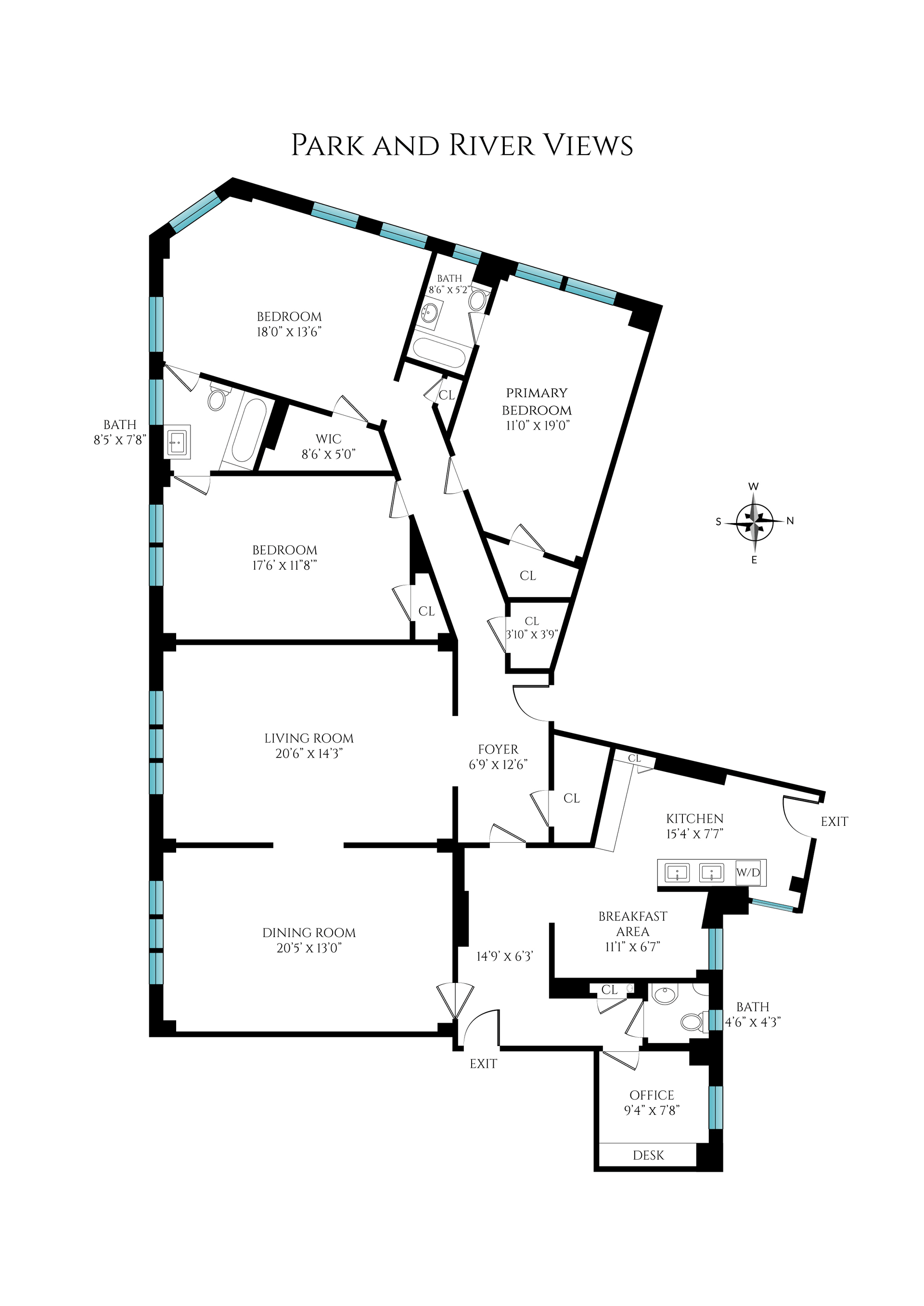 Located at 180 Riverside Drive—one of the most coveted cooperatives along the Drive—residents enjoy a full-service building with a gym, children’s playroom, bike room, individual storage units, and laundry facilities.