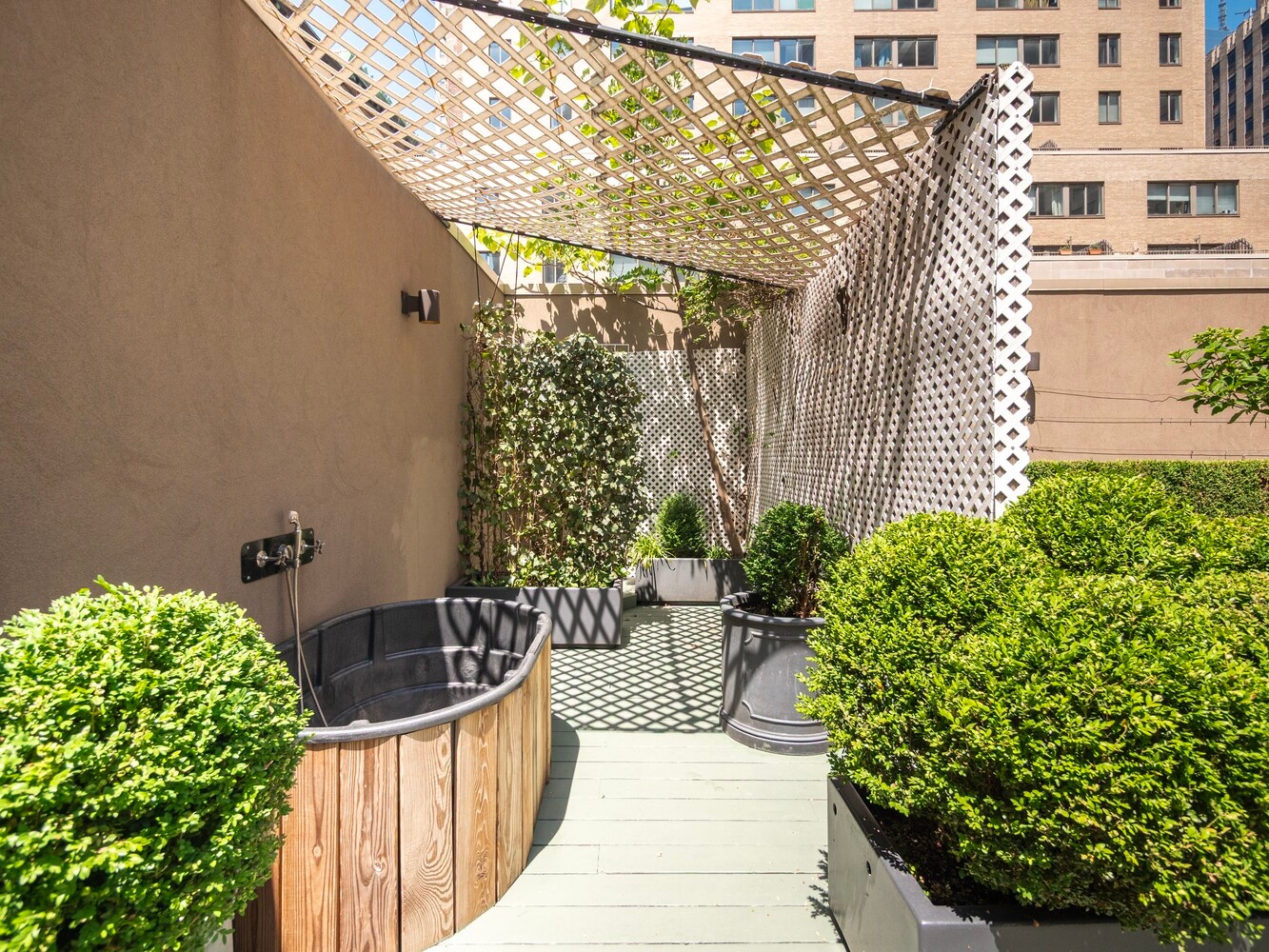Roof deck with soaking tub and shower
