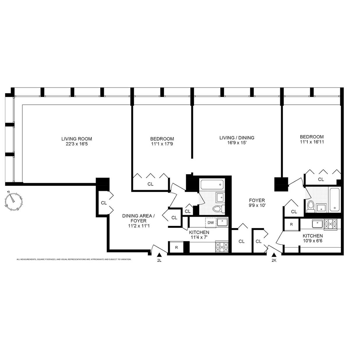 Currently being legally combined, this spacious 1,625 SF apartment will be delivered as a fully legal combination at closing. The layout offers endless potential, whether you're looking to create a luxurious 3-bedroom sanctuary or even a 4-bedroom home. With 14 large windows and both north and west exposures, this home is flooded with natural light all day long. Enjoy open views of the iconic Chrysler Building and the vibrant city skyline. While the apartment is in need of renovation, the possibilities are endless. With incredibly low monthly charges and renovations to the lobby, gym, playroom, hallways (on-going), there is no better time to live at Kips Bay Towers!!
