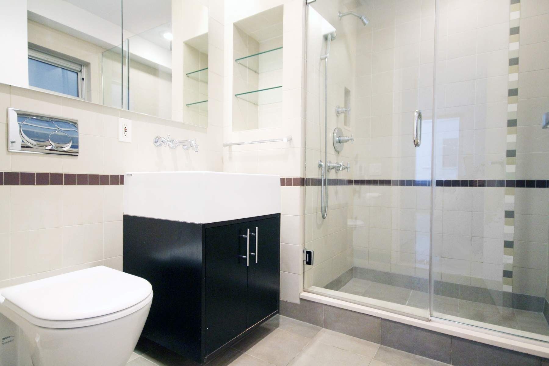 Both bedrooms are positioned at opposite ends of the apartment, each with its own full bathroom, allowing for exceptional privacy and flexibility. The separation makes the home ideal for sharing, guests, or a dedicated work-from-home setup, while maintaining a calm, residential feel. Bathrooms feature thermostat-controlled radiant heated floors, reinforcing the home’s emphasis on comfort and thoughtful design.