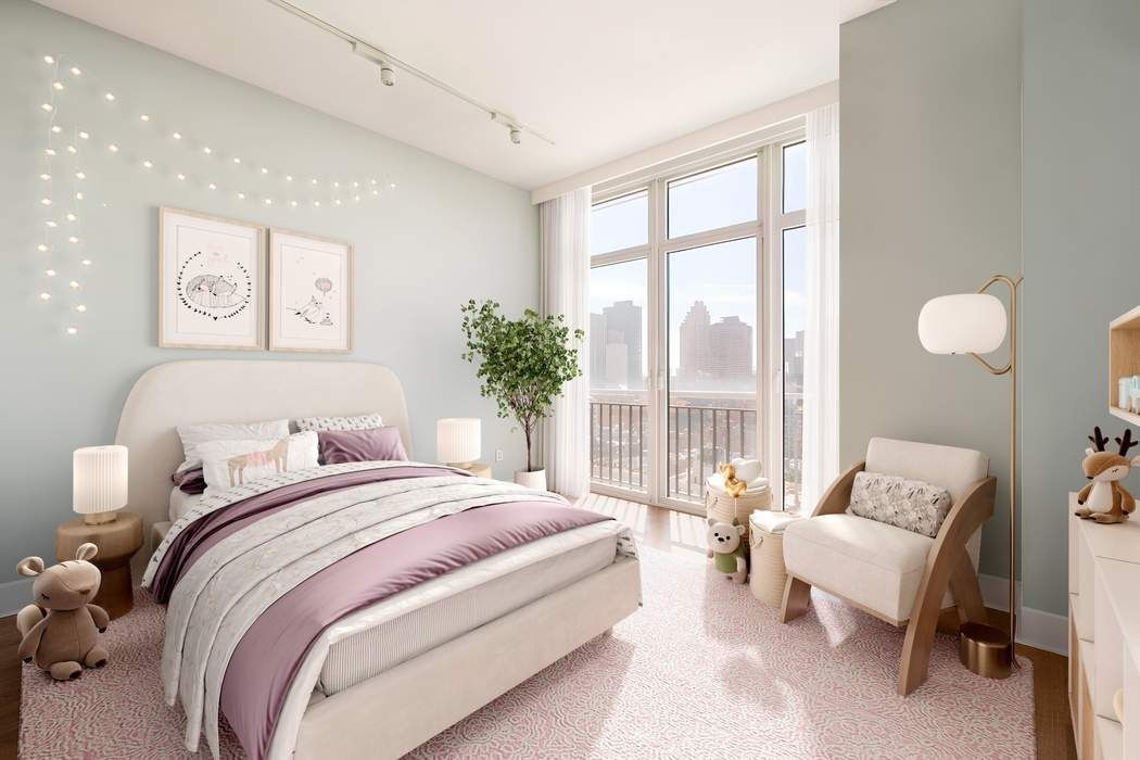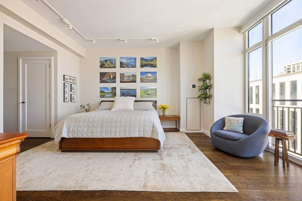 One flight down the striking architectural staircase are the private quarters, housing four sun-filled bedrooms and a laundry room with a large LG washer and vented dryer. The primary suite offers comfort and tranquility and is highlighted by floor-to-ceiling windows and a huge spa-like windowed corner bathroom with double vanities, oversized soaking tub, glass-enclosed shower, radiant-heated floors, and skyline views north and east. Each of the three additional generously scaled bedrooms boasts well-appointed ensuite bathrooms, two with bathtubs and one with a glass stall shower. Custom millwork, gorgeous wood floors, sound system, enviable custom closets and storage space, and multi-zoned central cooling and heating further distinguish this rare and special offering.