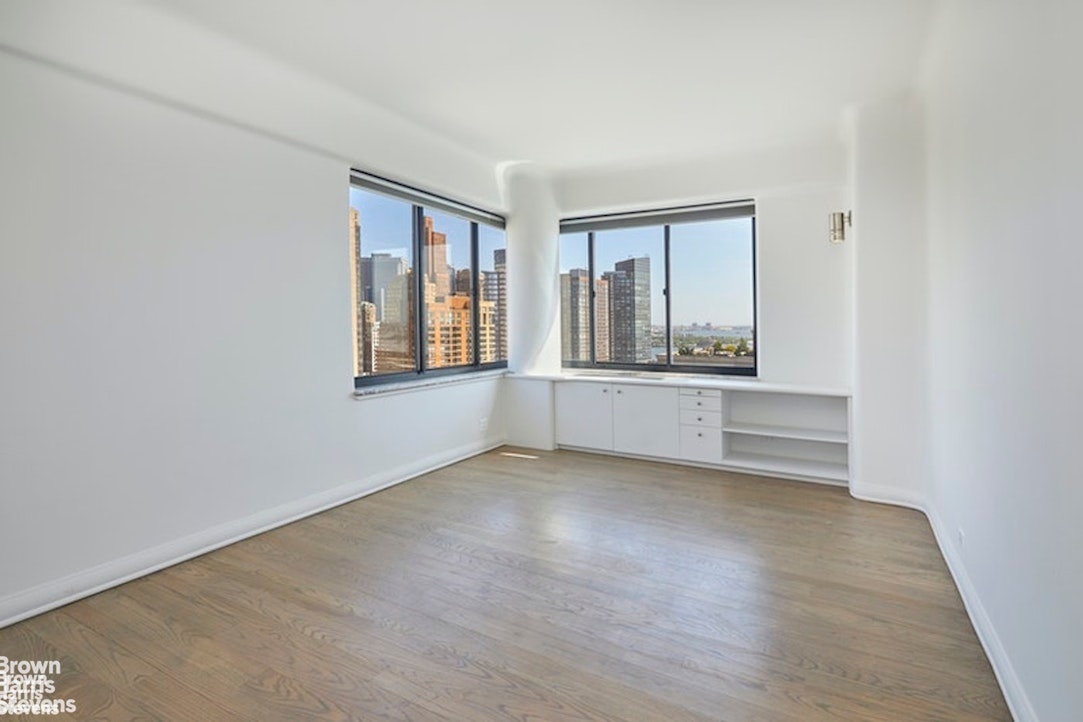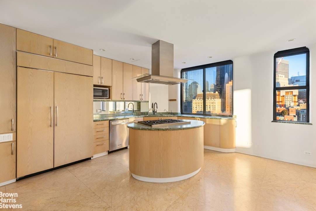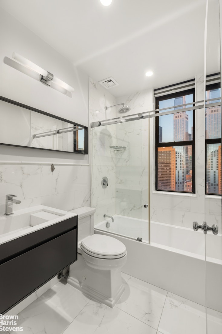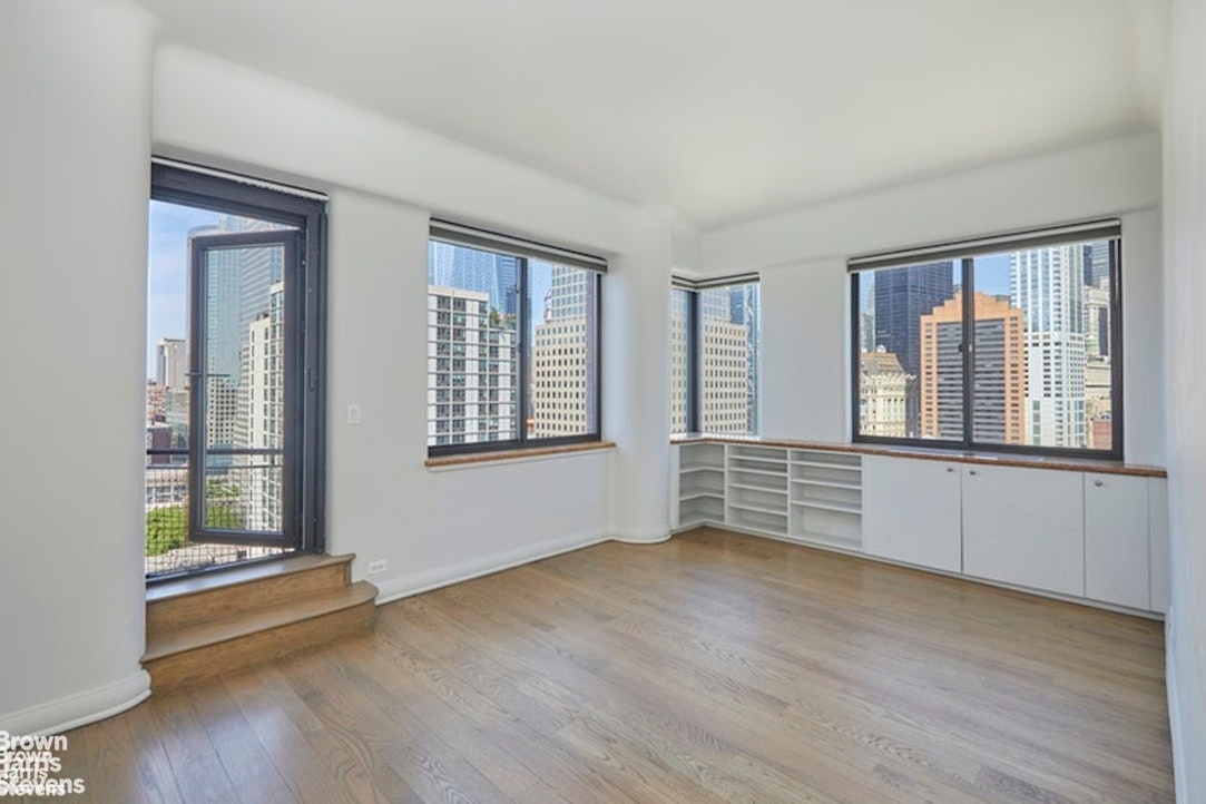 The second bedroom also comes with a private terrace and an en-suite bathroom. Storage space is abundant throughout the apartment, and the rooms are of grand proportions. Ceiling heights reach 9'7", and there are 21 windows with exposures in every direction.