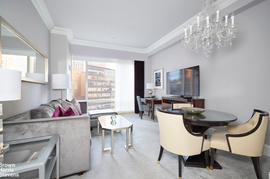 The perfect pied-a-terre at Trump International Hotel & Tower. Owning a hotel suite at 1CPW gives you the luxury of a 5-Star hotel with the convenience of apartment ownership. The hotel has 24 hour room service, 6000 square foot fitness center and spa center, 55 foot lap pool, business center with private conference rooms and a personal attach that can make almost any request a reality.