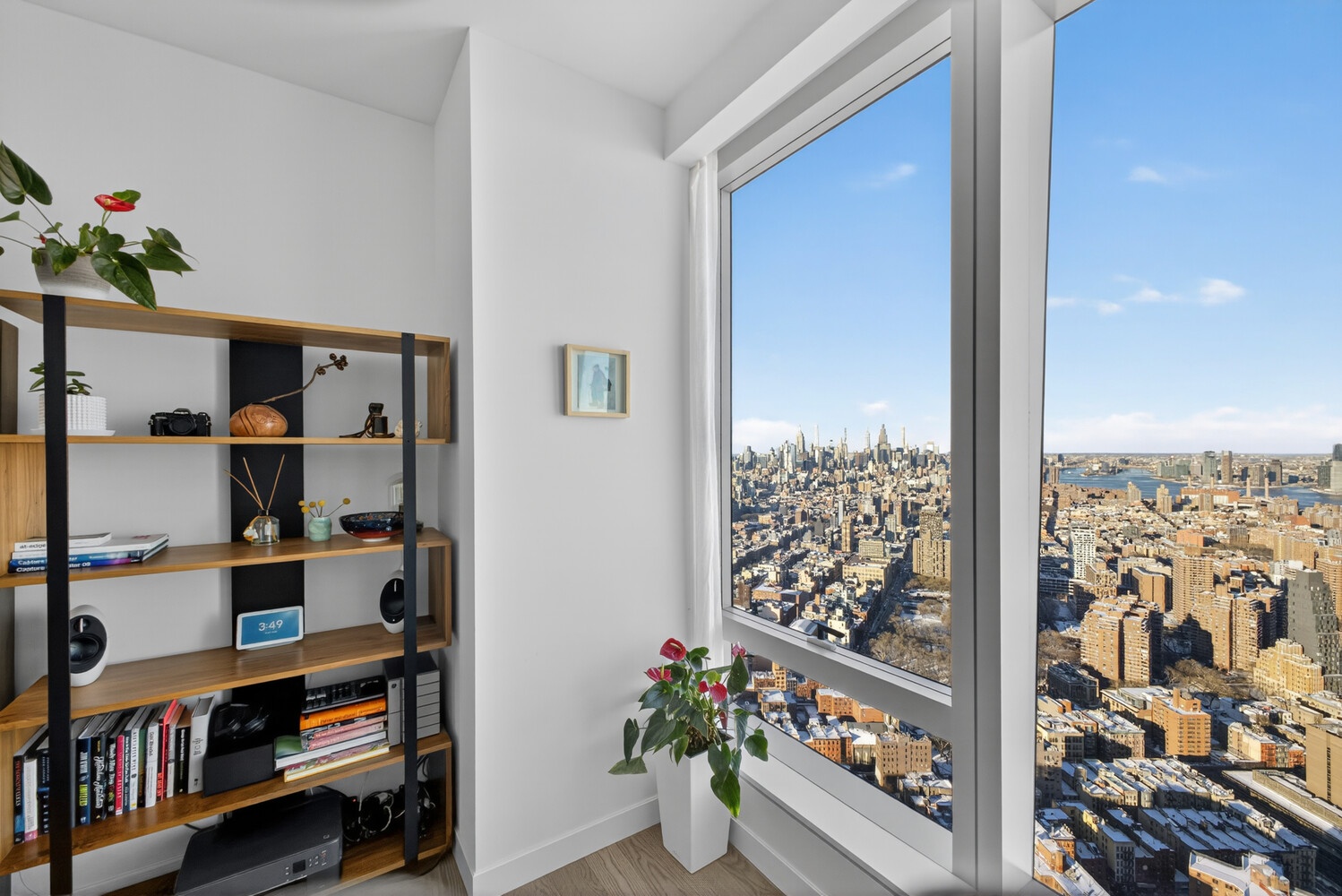 Located on the 64th floor, this residence offers sweeping views of Manhattan's skyline and the Empire State Building, along with the East River and Brooklyn. From morning light to evening city lights, the views create an inspiring backdrop visible from both the living area and the bedroom.