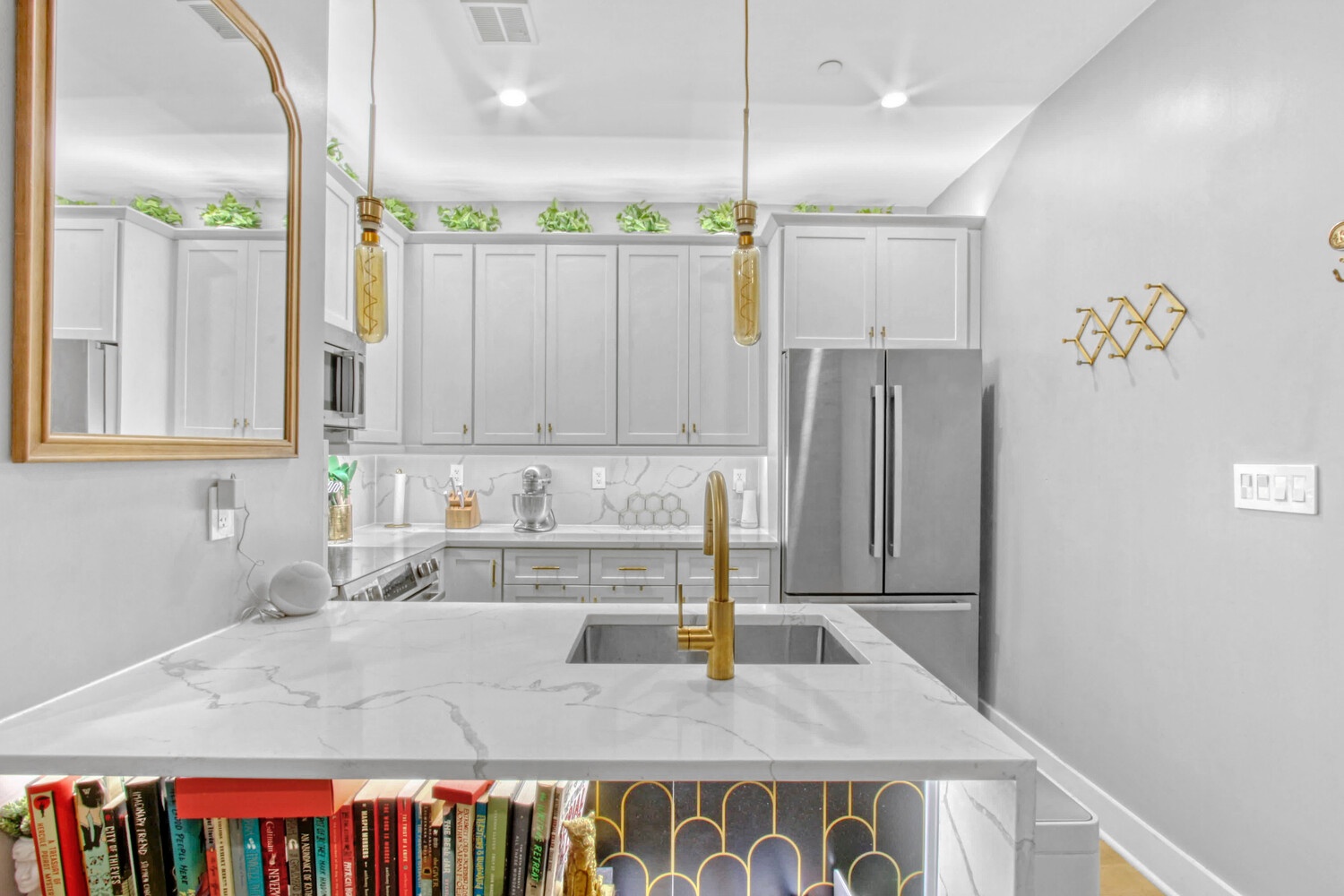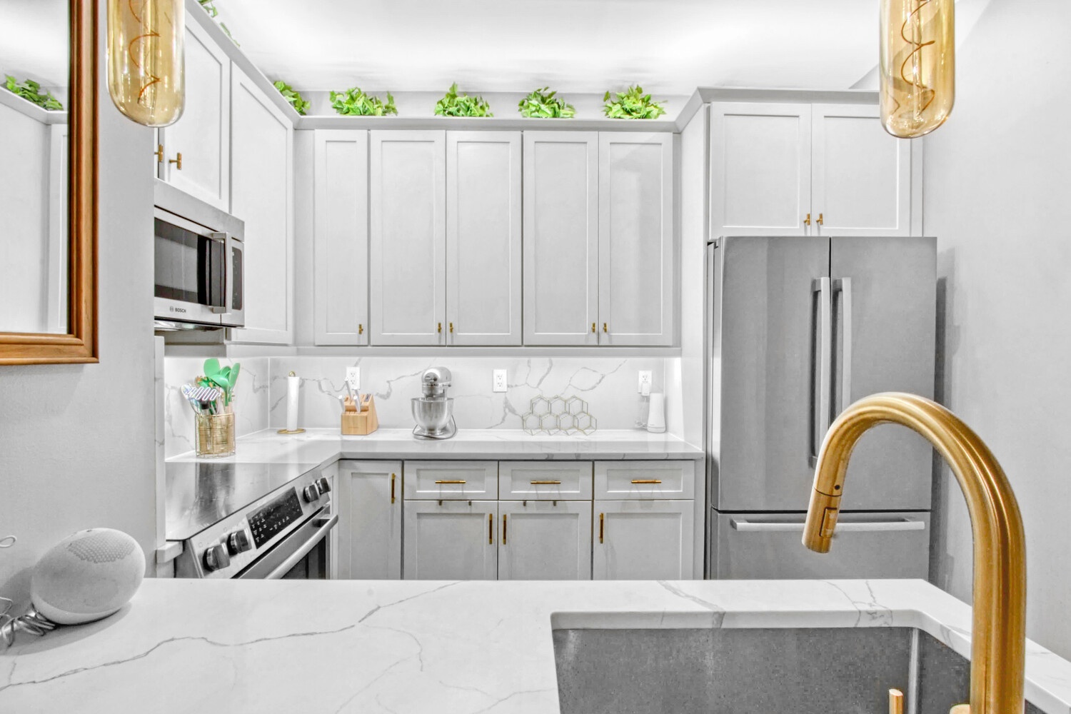 Make this chic 1-bedroom residence your next home in the heart of Bedford-Stuyvesant! Residence 2R at Golden Gates Condos offers a refined blend of contemporary design and classic Brooklyn charm, wrapped in a boutique brownstone-inspired condominium setting. Thoughtfully crafted to maximize both style and function, the home welcomes you with an elegant eat-in kitchen featuring white-marbled quartz countertops, matching backsplashes, a waterfall peninsula, matte-gold fixtures, custom cabinetry with recessed lighting above and below, and a suite of premium Bosch and Blomberg stainless steel appliances. The open-concept living and dining area is enhanced by 10-foot ceilings, oversized double-insulated sash windows, and wide-plank white oak flooring, creating a bright, loft-like ambiance perfect for everyday living and effortless entertaining. The king-sized bedroom offers generous proportions and a custom reach-in closet, while the spa-inspired bathroom is finished with Porcelanosa tilework, Delta fixtures, and a sleek glass-enclosed shower. Additional comforts include in-unit washer/dryer, central heating and cooling, recessed lighting throughout, and a modern video intercom system. Set within a boutique 8-unit condominium, Golden Gates Condos balance modern Italian-influenced design with the soul of classic brownstone architecture. Residents enjoy access to a common rooftop deck, a tranquil rear garden, and a shared laundry room, all just three blocks from the beloved Herbert Von King Park. Perfectly positioned near the neighborhood's most celebrated eateries, cafés, and cocktail bars-including Peaches HotHouse, Sincerely Tommy, Stone Fruit, Lovers Rock, LunÀtico, Speedy Romeo, Clementine Bakery, and more-this home embodies the best of Bed-Stuy living. With the A, C, and G subway lines nearby, commuting is seamless. Pets are welcome.
