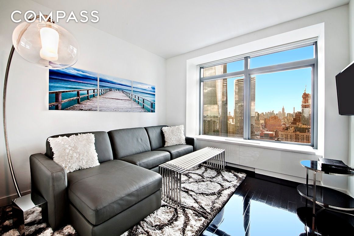 The foyer and gallery set the tone as you enter and experience pure elegance with excellent modern detail and finishes. The living/dining room is generously proportioned, while the adjacent kitchen is outfitted with top-of-the-line paneled and hidden appliances, including a dishwasher. Tremendous windows facing north and west usher natural light inside throughout the day, while offering unparalleled Downtown views. Ebonized maple hardwood floors run throughout; Furnishings have been provided by Tui. The master bedroom has a northern exposure of its own and no less than three oversized closets. The stunning master bath has a stand-in shower, plus a separate deep soaking tub, custom vanity, multiple mirrors and unique tiling. Across from the second windowed bedroom is an additional full bathroom with a shower, and a separate laundry closet with a washer/dryer unit completes the apartment’s layout. Admire the sliding pocket doors and the Omnia lever hardware while enjoying thermostatic control in each room. The apartment will easily rent for $9000 per month or $108,000 per year.