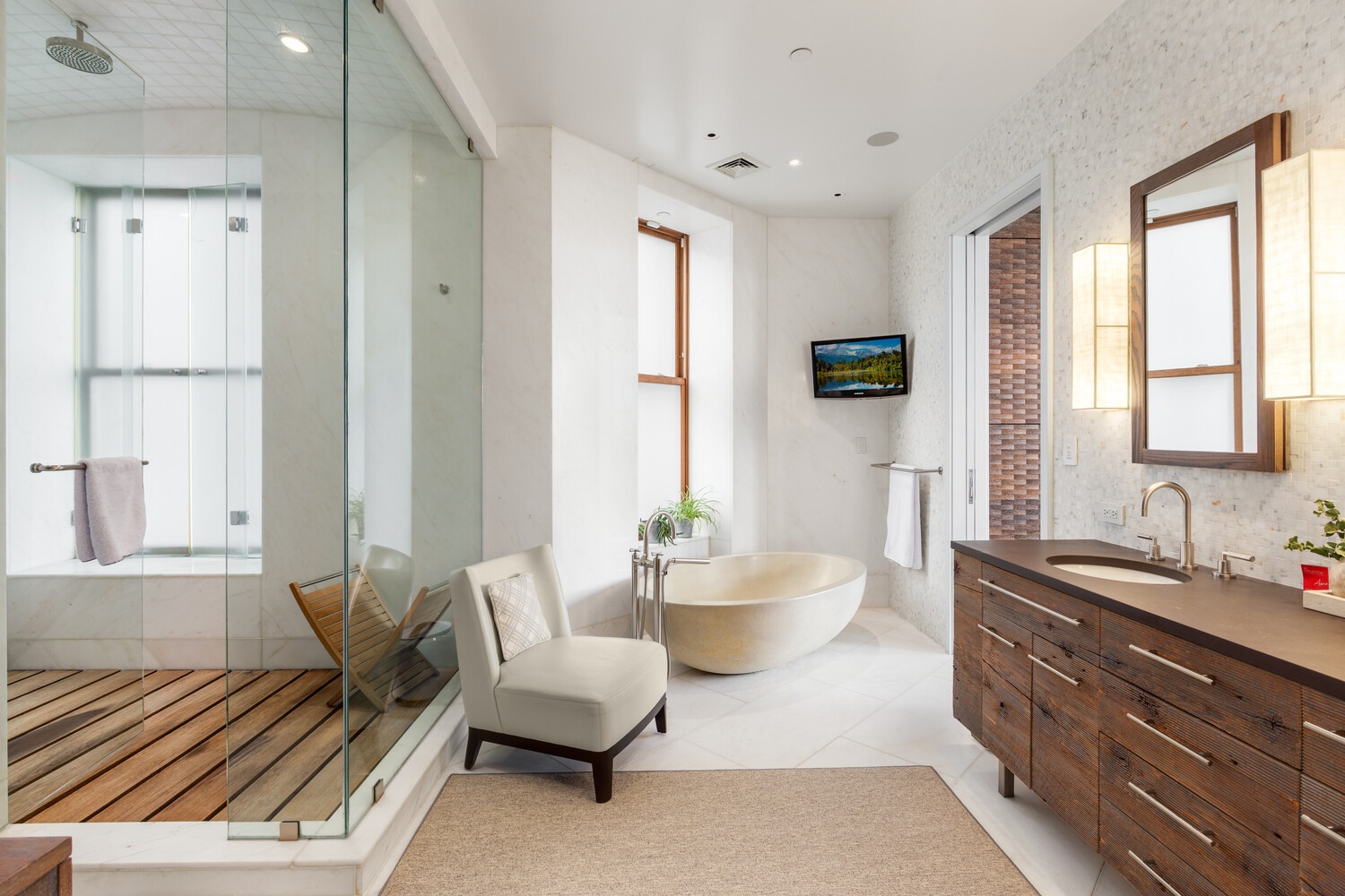 - Full Crestron smart-home system controlling sound, lighting, and climate