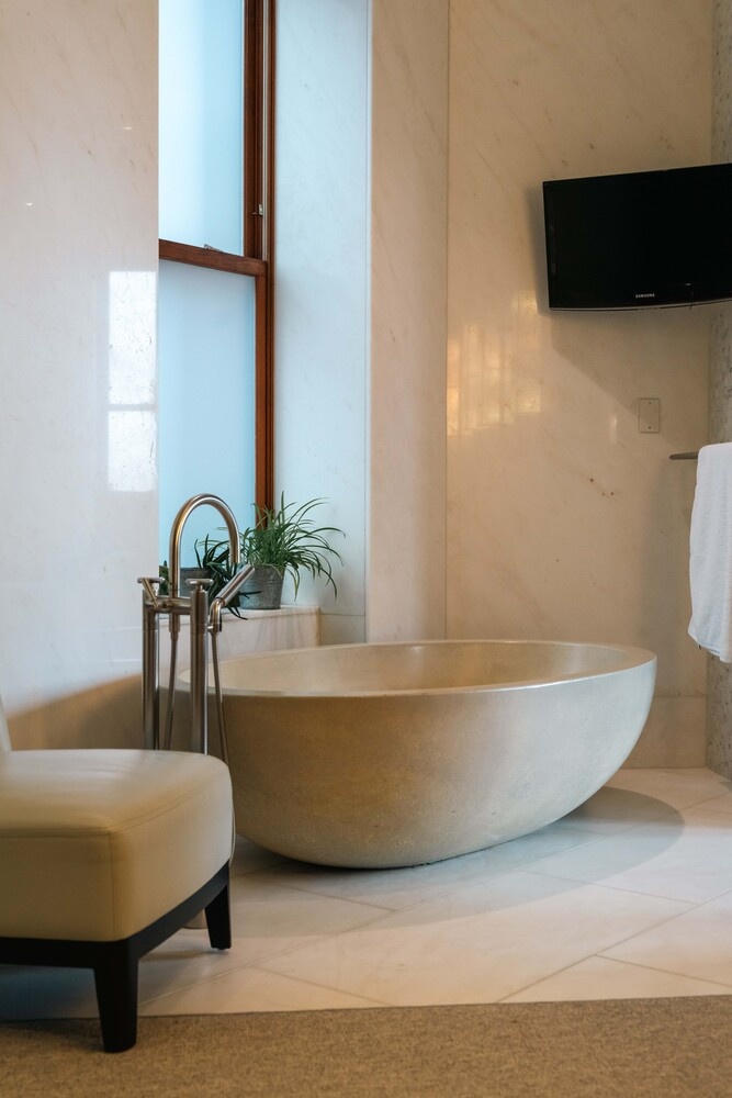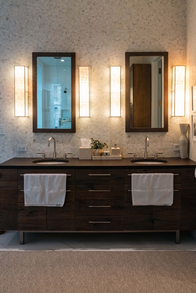 The 30' 15' primary suite is a private retreat, complete with a gas fireplace, open sunset views, and a private balcony ideal for morning coffee or evening cocktails. The spa-inspired primary bath features slab marble finishes, radiant heated floors, dual vanity, soaking tub, and a steam shower, creating a true wellness sanctuary.