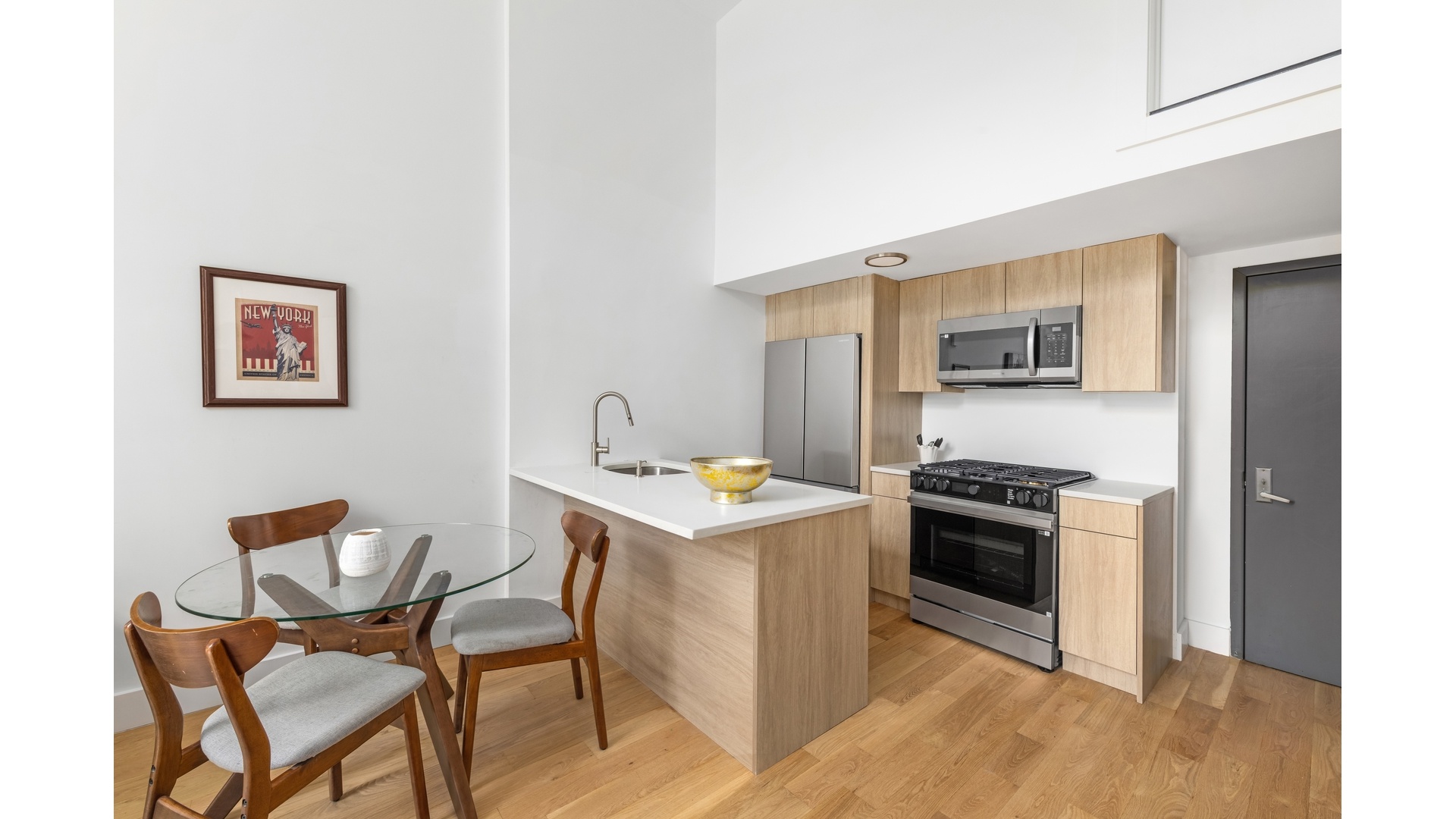Newly renovated and full of character, this stunning 1BR loft with office blends modern comfort with dramatic architectural flair. Soaring double-height ceilings and oversized windows flood the space with natural light. This home has plenty of amenities too including laundry in unit, dishwasher, and central heating & air conditioning.