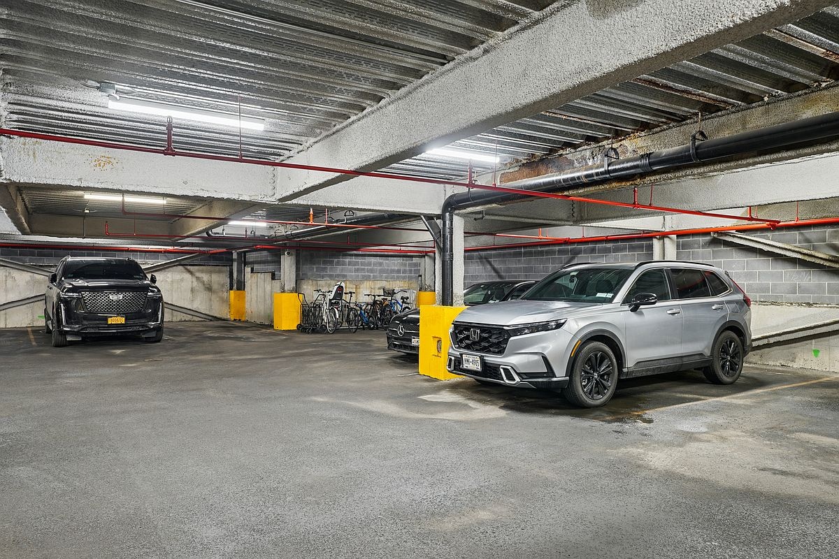 Residence 6C at East River Tower is a sun-drenched 711 SF one-bedroom condominium offering open Manhattan skyline and East River views, a private balcony, and the rare convenience of deeded garage parking.