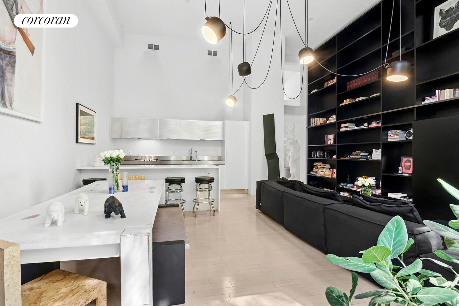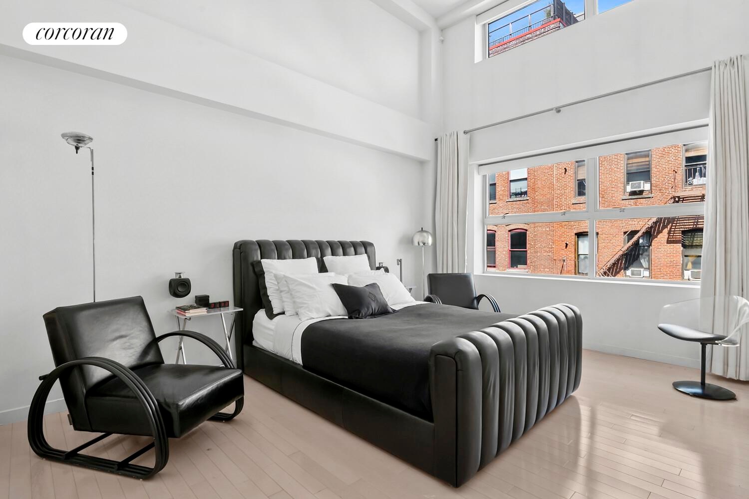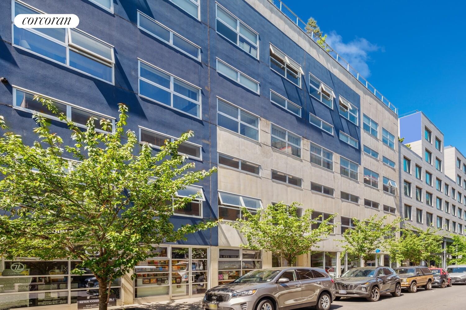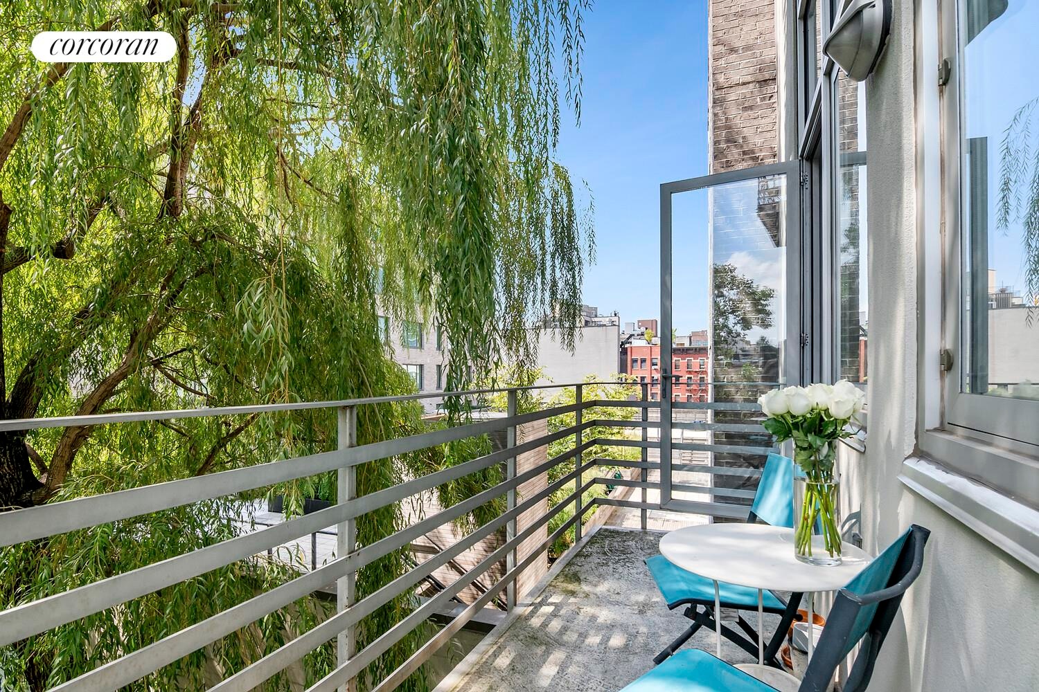 Discover the quintessential Williamsburg Loft in the heart of the Northside 1 block from Bedford Avenue. This exceptional 3-bedroom, 2-bath duplex loft encompasses 1,505 square feet of artfully designed space, seamlessly blending distinctive architectural elements with contemporary finishes. Soaring 15-foot ceilings and expansive, sun-drenched windows create an ambiance of generous volume and luminous ambiance, epitomizing loft living, all complemented by an expansive balcony surrounded by lush greenery and an underground PRIVATE PARKING SPACE (sold separately) with EV charging station.