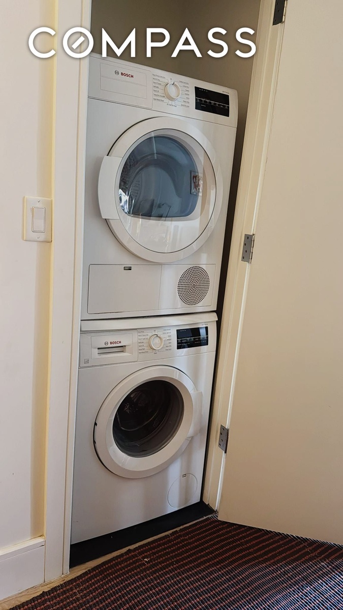 The open-concept kitchen is a chef's dream, with an oversized island, black stainless appliances, and contemporary basalt granite countertops. The spa-like bathroom offers a rainfall shower-head, a deep soaking tub, and heated floors. Plus, you'll love the convenience of an in-unit Bosch washer and dryer and the comfort provided by mini split cooling and heating units.