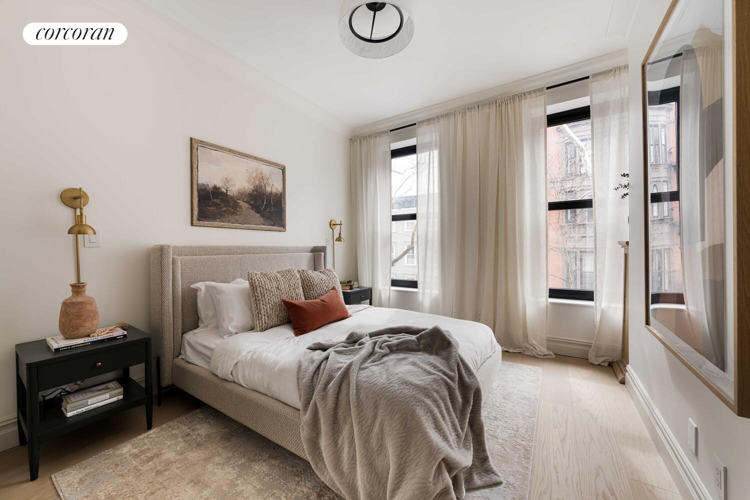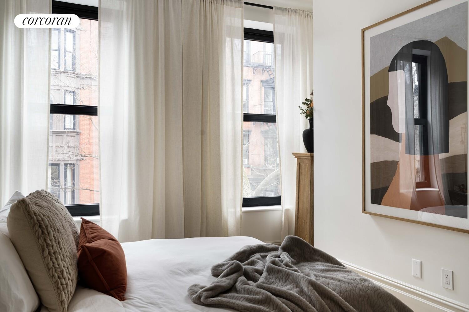 On a picturesque, tree-lined block in Brooklyn Heights - where historic facades and leafy canopies create one of the city's most charming streetscapes - a classic townhouse has been transformed into meticulously crafted condominiums. Within, this floor-through two-bedroom, two-bath residence offers almost 1,000 square feet of thoughtfully designed living space, pairing the charm and proportions of historic townhouse architecture with refined contemporary finishes and modern systems - including central climate control and a fully integrated suite of Bertazzoni appliances.