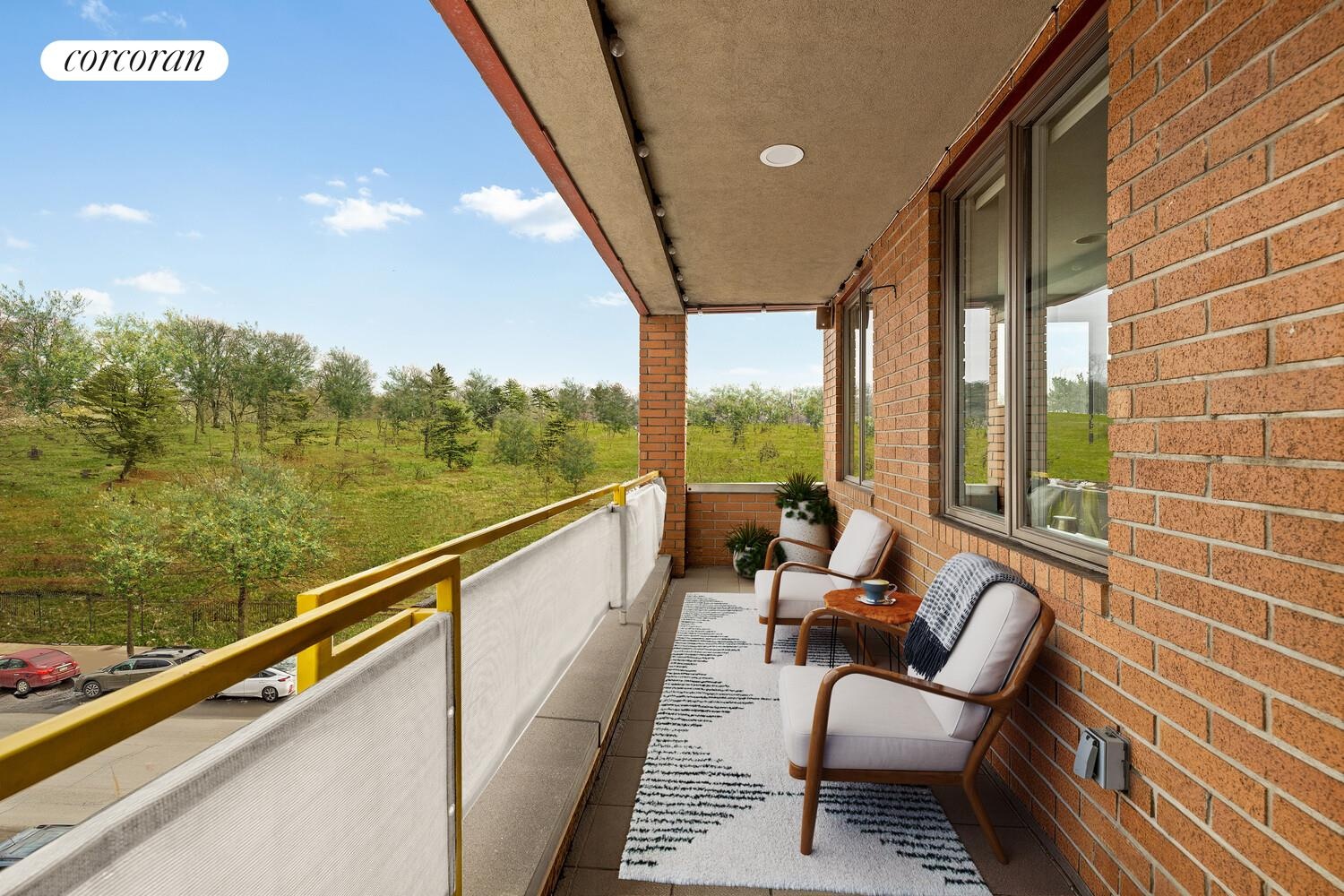 This sun-drenched home brings the outdoors inside with a wall of windows with sweeping vistas of historic Green-Wood Cemetery, 478 acres of ponds, trees, gardens, and open sky, with sunshine streaming beautifully through every room. There's more! Your private 180 sq. ft. terrace, perfect for morning coffee or sunset unwinding is complemented by two shared roof decks for even more outdoor enjoyment. In addition, your dining area window offers the gorgeous NYC skyline, with evening sunsets illuminating iconic NYC buildings.