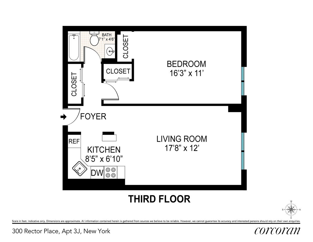 Welcome to Unit 3J at 300 Rector Place—a delightful condo in the heart of a vibrant neighborhood! This one-bedroom, one-bathroom residence offers 625 square feet of meticulously maintained living space. Nestled on the third floor of a charming post-war low-rise, this excellent condition unit boasts a cozy living room ideal space for relaxation and entertaining. The classic kitchen creates a welcoming space for culinary adventures. With northern exposure, you'll enjoy a bright, inviting atmosphere throughout. Pet lovers will be thrilled to know that this pet-friendly building is equipped with a full-time doorman and concierge, ensuring peace of mind for residents. The building's amenities are designed to impress, with a recreation room, an elevator for easy access, and a fantastic roof deck offering stunning city views—a perfect locale for unwinding after a busy day. Situated in a thriving community, you'll relish convenient access to picturesque parks and reliable transportation options, making all of New York City within easy reach. Enjoy the nearby attractions, shops, and eateries, enhancing your urban lifestyle. Capture the essence of city living at its finest—schedule a viewing today to explore the potential of making Unit 3J your new home!