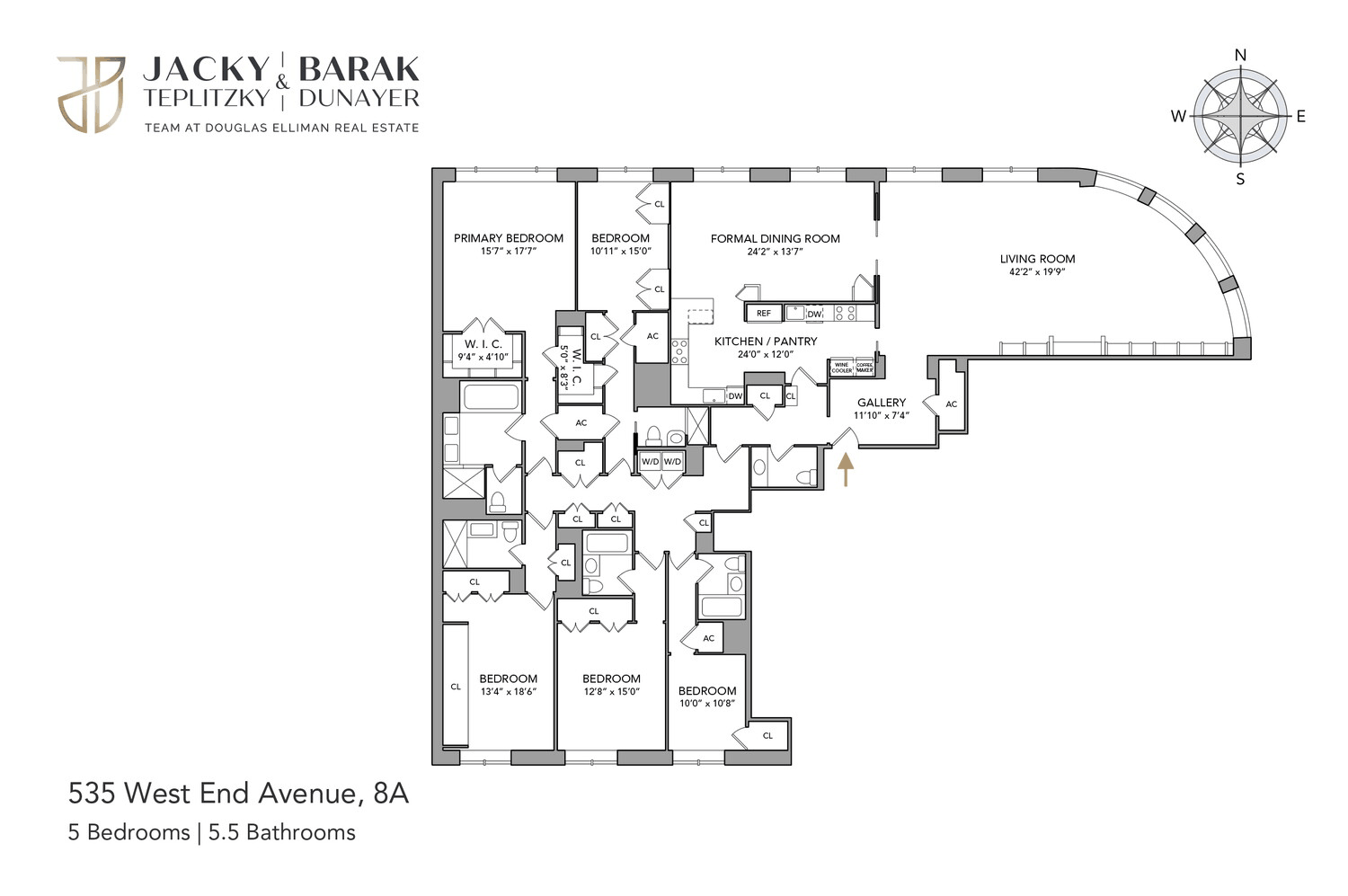 535 West End Avenue stands as one of the Upper West Side's most prestigious and distinguished addresses, seamlessly blending pre-war grandeur, modern sophistication, and unparalleled amenities with white-glove service. This rarely available, sprawling 4,400-square-foot, five-bedroom, five-and-a-half-bathroom condominium home exudes timeless elegance and contemporary luxury.