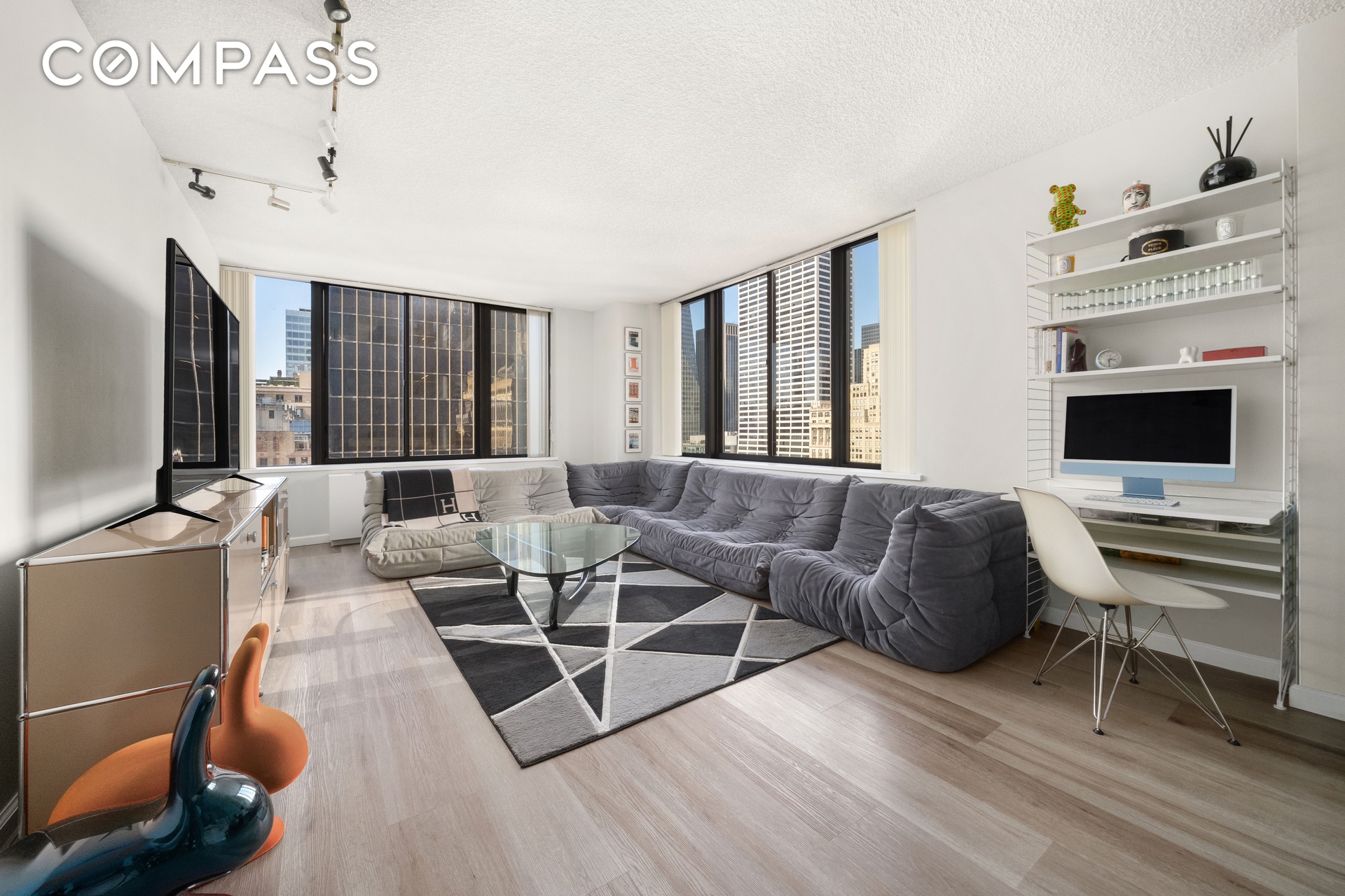 Sun-drenched and sophisticated, this home features large, expansive windows that frame some of the city’s most celebrated architectural landmarks. As a coveted corner residence, the living area offers a dual-exposure perspective unique to the 'A' line, creating an airy, open atmosphere throughout the day. Residents enjoy a front-row seat to the elegance of Fifth Avenue, with a charming glimpse of Bryant Park nestled just beyond the historic library, a quintessentially New York backdrop that provides a perfect blend of metropolitan energy and park side serenity.