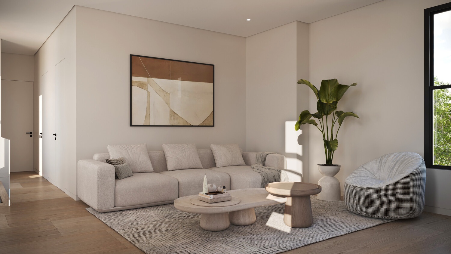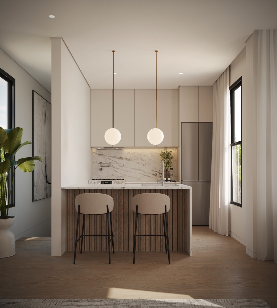 Residence 2 at 2132 Bleecker Street is a thoughtfully renovated two bedroom, one bath condo that blends modern minimalism with warm, natural materials. The interiors feel calm and intentional, featuring wide-plank wood floors, oversized windows, and soft, neutral finishes throughout.