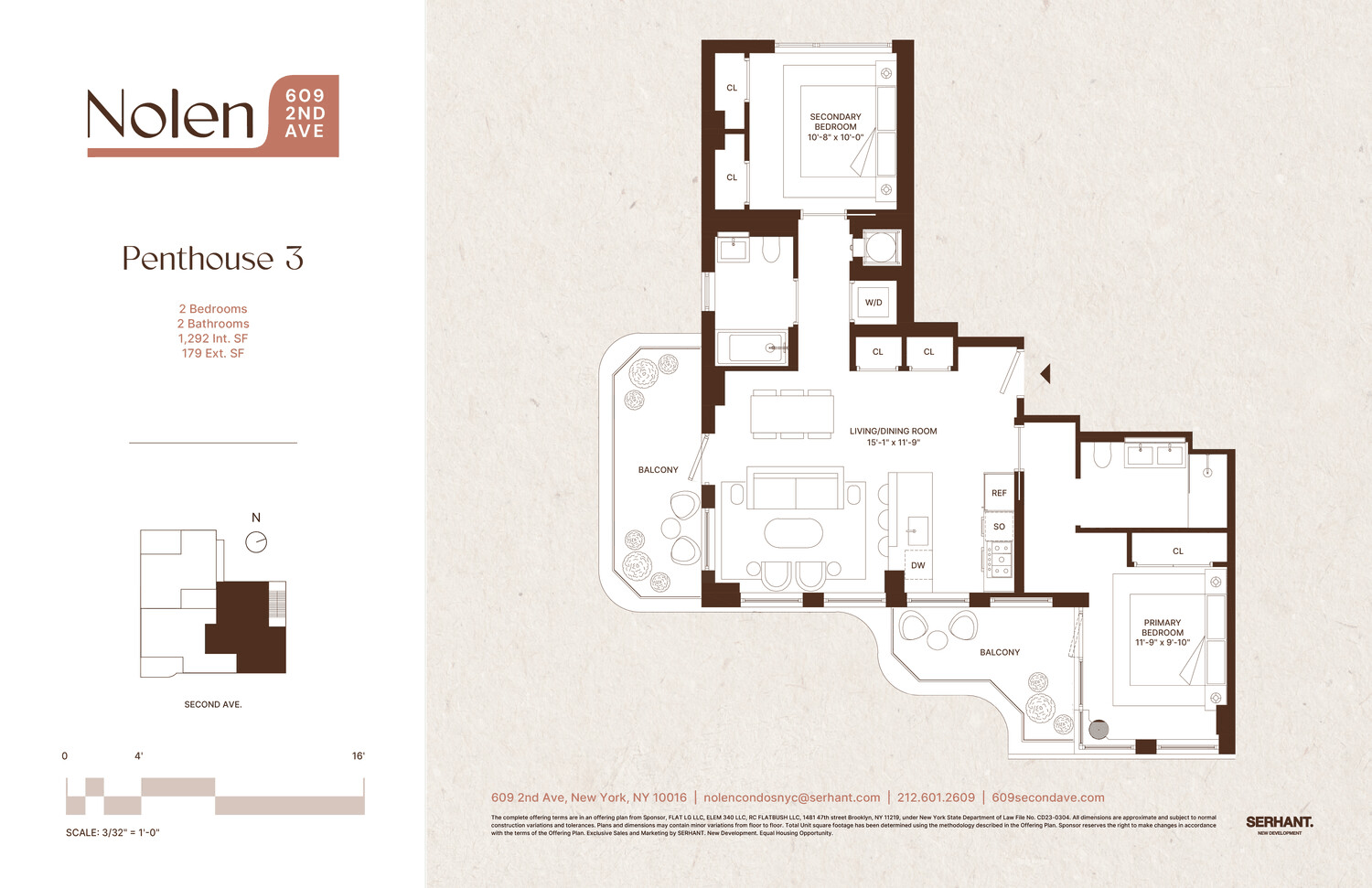 A most luxurious Kips Bay residential experience awaits in this sun-bathed 2-bedroom, 2-bathroom penthouse with private outdoor space at Nolen, an elegant new full-service condominium crafted by the visionary teams at ODA and Fischer + Makooi Architects.