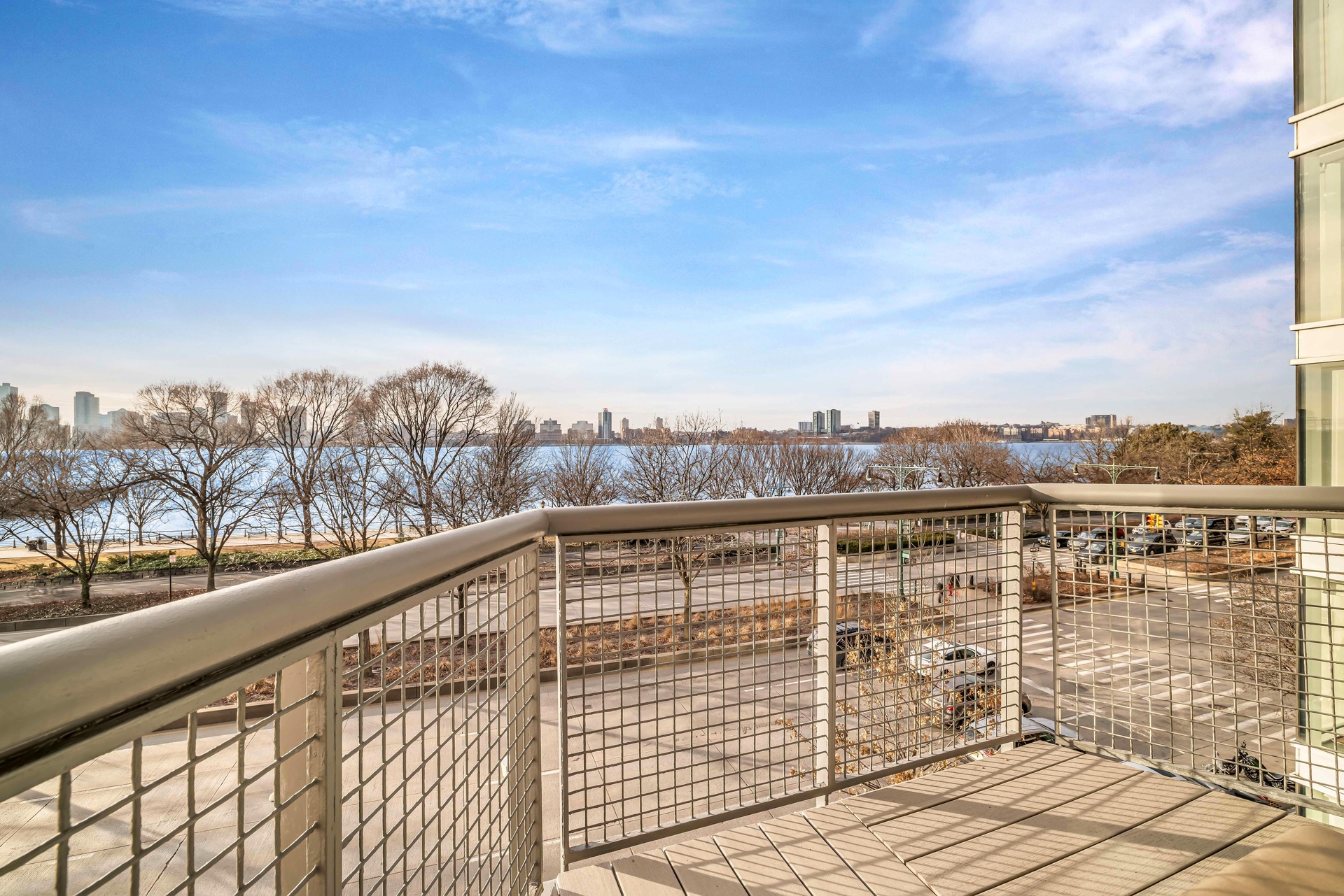 Designed for elevated living and effortless entertaining, the open chef’s kitchen is both striking and functional, featuring top-of-the-line stainless steel appliances, a wine cooler, and expansive prep space. The kitchen flows seamlessly into the living and dining area, where a wood-burning fireplace adds warmth and timeless character. A private balcony overlooking the river extends the living space outdoors, offering a front-row seat to the Hudson.