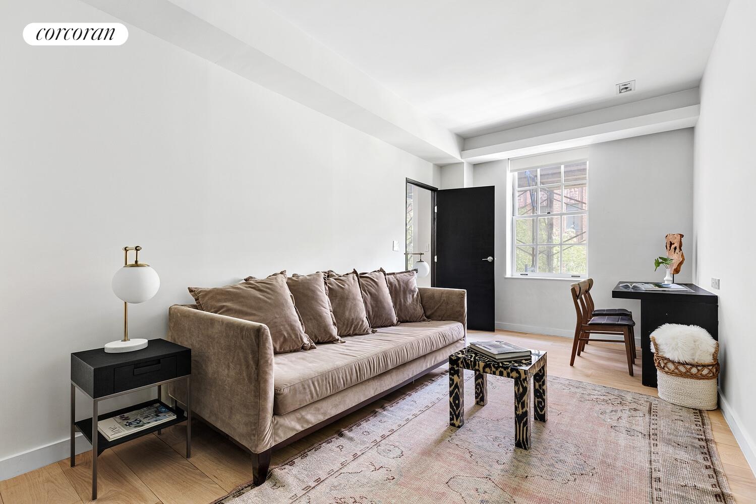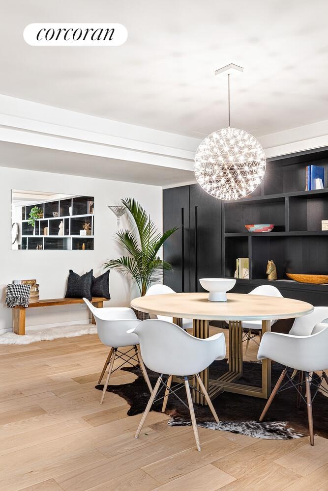 A private keyed elevator opens directly into the home, revealing a gracious floor-through layout with north and south exposures and lovely tree-lined views. Oversized windows fill the residence with natural light, highlighting the beautiful hardwood floors that run throughout.