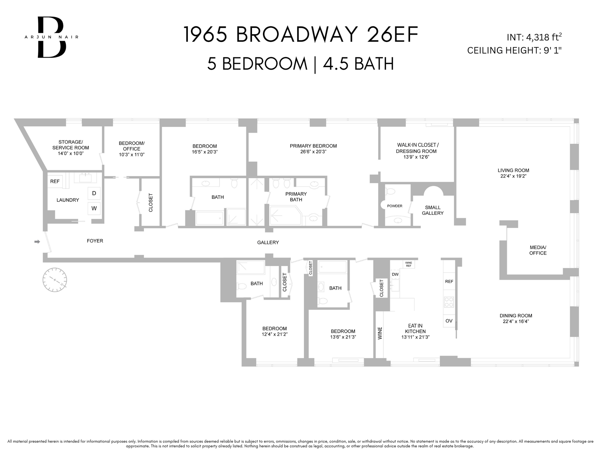 Welcome to Residence 26EF at the Grand Millennium — a rarely available, mint-condition 5-bedroom, 4.5-bathroom home spanning over 4,300 square feet. Perched on a high floor of one of the Upper West Side’s most prestigious condominiums, this double-corner residence offers grand scale, impeccable craftsmanship, and unobstructed views of the Hudson River, Lincoln Center, and the New York skyline.