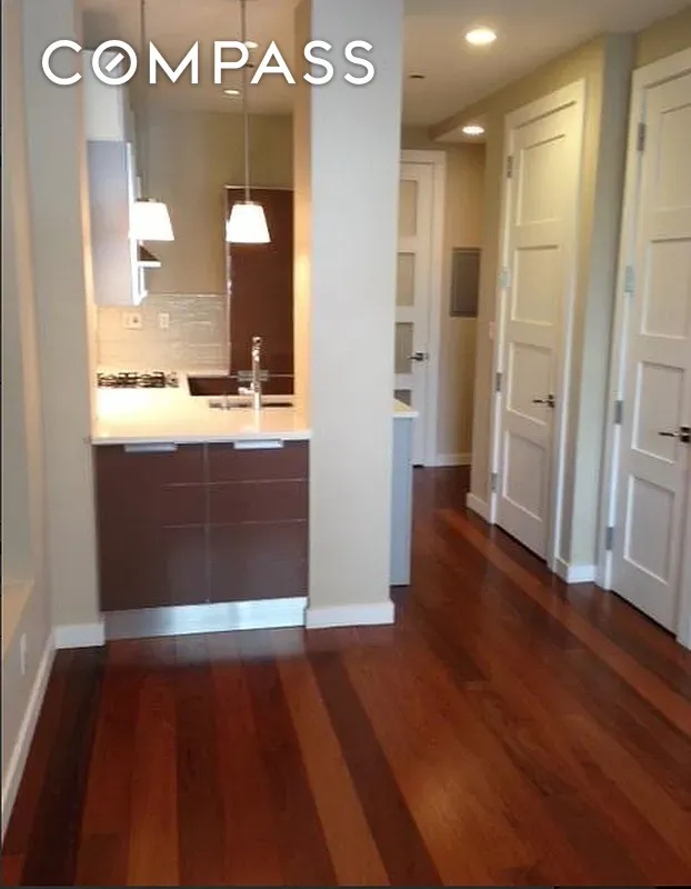 Triple mint alcove studio in a boutique elevator condo. Featuring Brazilian walnut floors, high ceilings, spa-like bathroom, custom closets and a new Washer/Dryer. The open kitchen is a chef's dream with a Liebherr refrigerator, Miele oven & stove and dishwasher, custom glass-fronted cabinetry and Caesarstone counters. The alcove fits a queen sized bed.